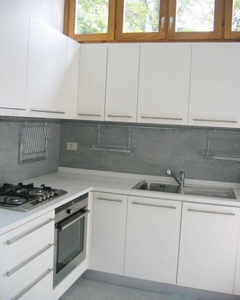 While Casa Varenna's architecture is simple, the interior is tastefully furnished with a stylish, modern feel and measures 90 square meters total. The house consists of only one level therefore can be recommended to people with walking difficulties. It features one double bedroom (only one bed that cannot be set as two twin beds), one twin bedroom, a bathroom with tub and shower head, storage room with washing machine, a living room, a nice new kitchen equipped with dishwasher, gas range and oven.