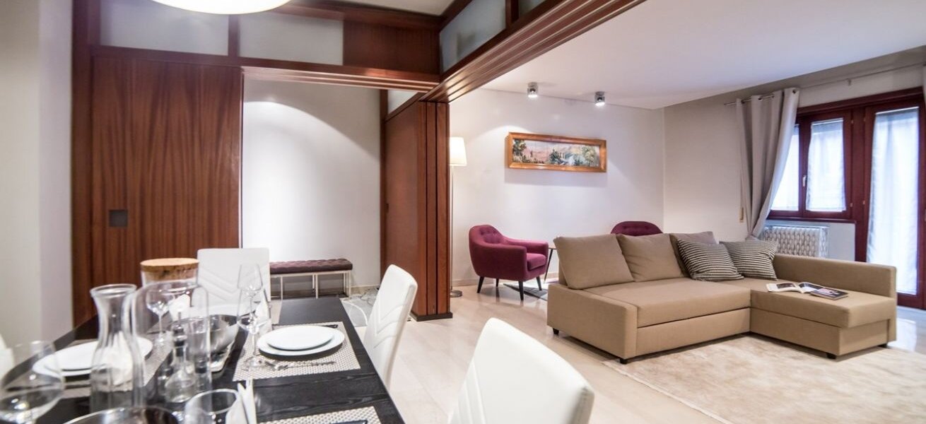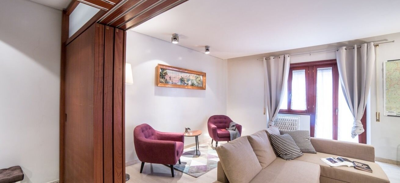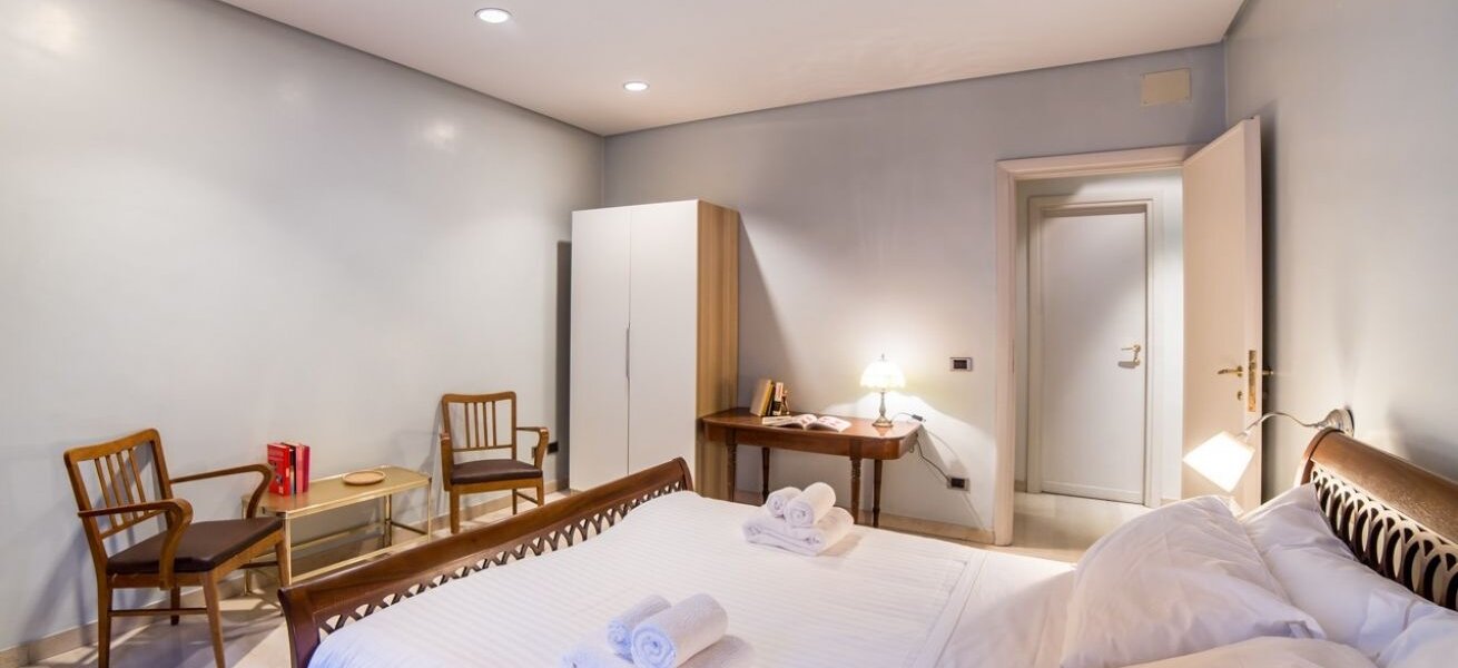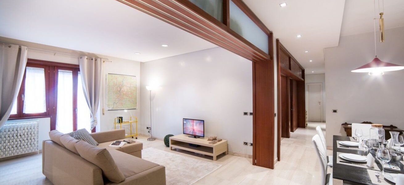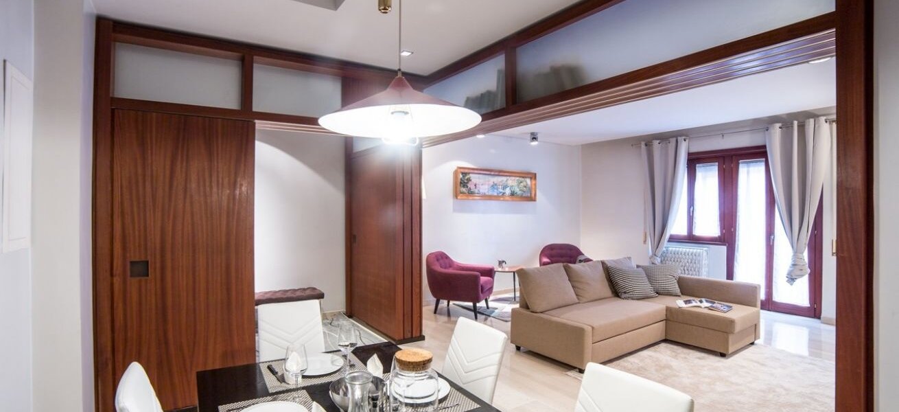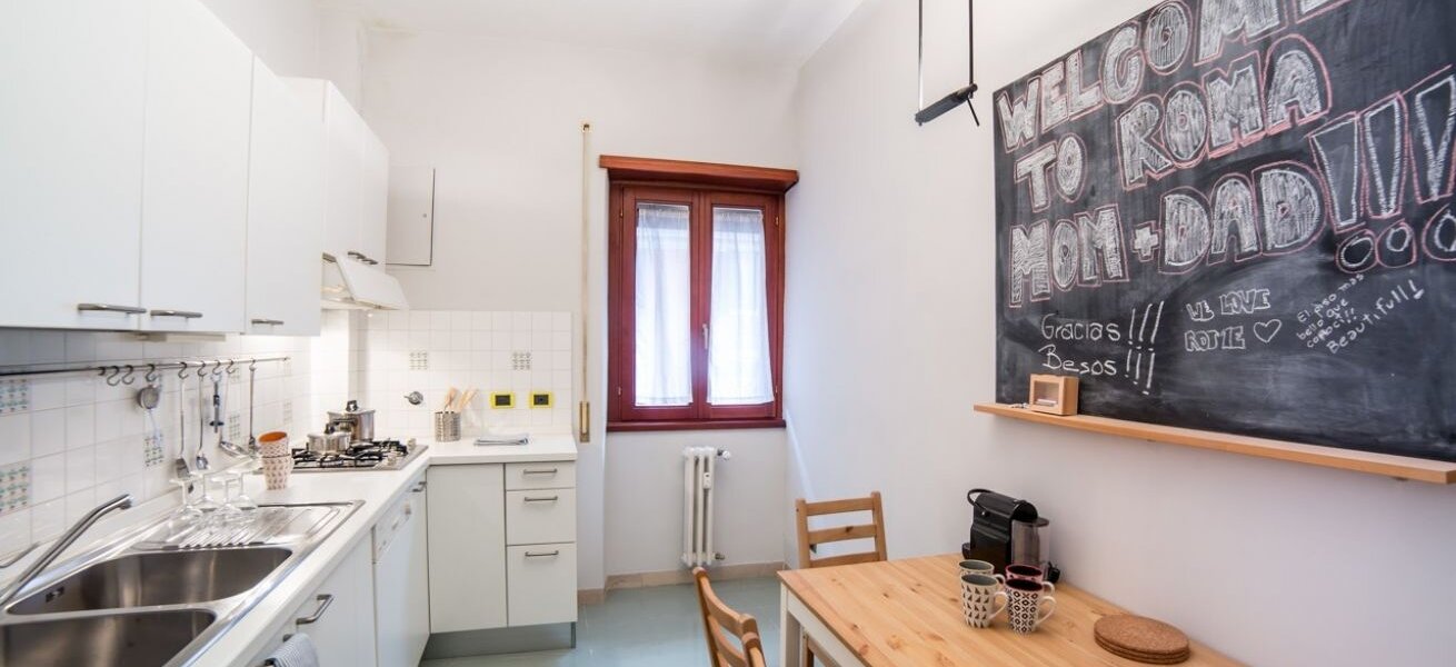Apartment Vaticano is large 150 square meter apartment in the Vatican area. Located on the 3rd floor with elevator, it has a double living room, a fully equipped kitchen, one bathroom with tub, one bathroom with shower, 2 bedrooms with Queen beds and one bedroom with bunk beds, and can accommodate up to 6 people.