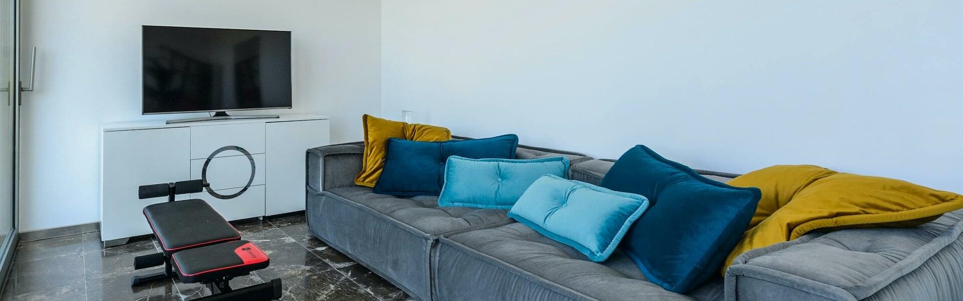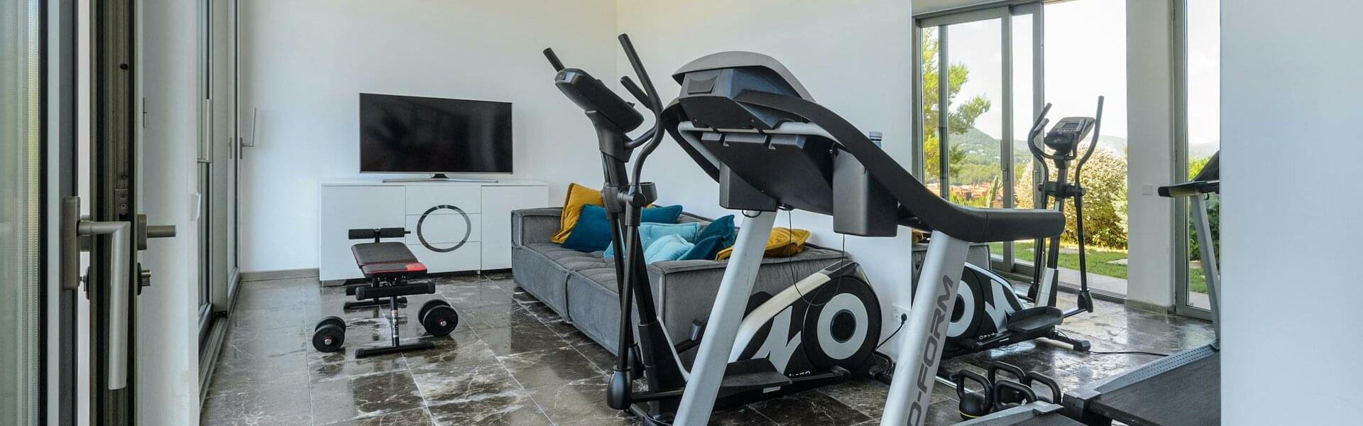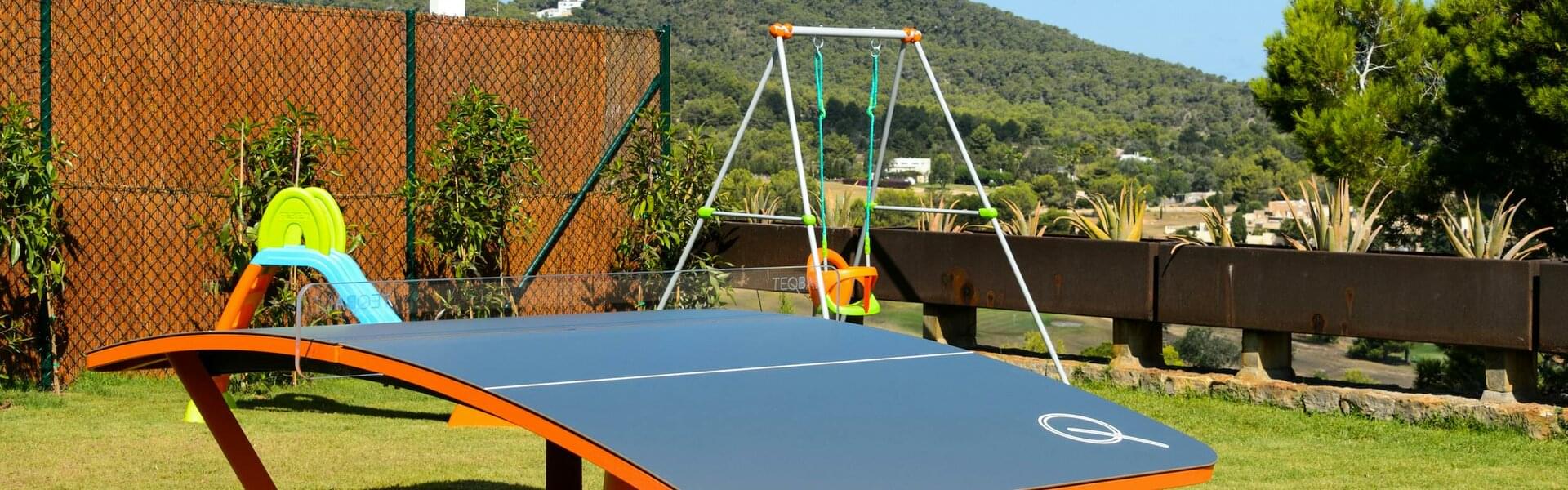 Here, you can relax on a lounger on this wide deck and soak up the warm Ibizan sunshine. Or enjoy a meal with friends at the large al-fresco dining table, seating fourteen. If you have children in your party, they’ll love playing on the manicured lawn beside the pool deck.