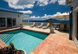 Villa Rose's main level opens to a sunny courtyard with the pool and a large deck for sunning, dining and stargazing. On the opposite side of the pool (which can be heated for you for an additional charge; please inquire) and sun deck is the air-conditioned main living/dining area and kitchen, a very elegant yet liveable interior filled with style and grace; this room is flanked by an inviting third bedroom and bath. Charming and very private, Villa Rose is tastefully decorated, and located within the Mahogany Run Golf Complex with its manned 24-hour security gate. You'll be on the green within a couple minutes' drive from the villa! Just wait until you see the full moon rise over St. John and scatter the ocean with silver moonbeams!