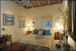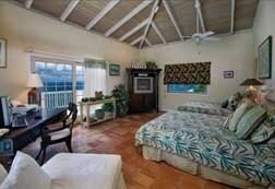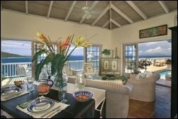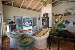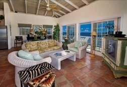 As soon as you walk through tropical gardens into Villa Rose's tiled courtyard with its azure pool, you'll feel the romance and seclusion of this immaculate villa rental, a stunning combination of comfort and gorgeous island style. Surrounded by a myriad of tropical flowers, this cheerful and fully air-conditioned villa features two very private master suites on two levels (one on the main pool level and the other below via a latticed exterior staircase), each with its own deck overlooking breathtaking ocean views. Please note: children are welcome, however, a notarized liability waiver is required for children under 8 years.