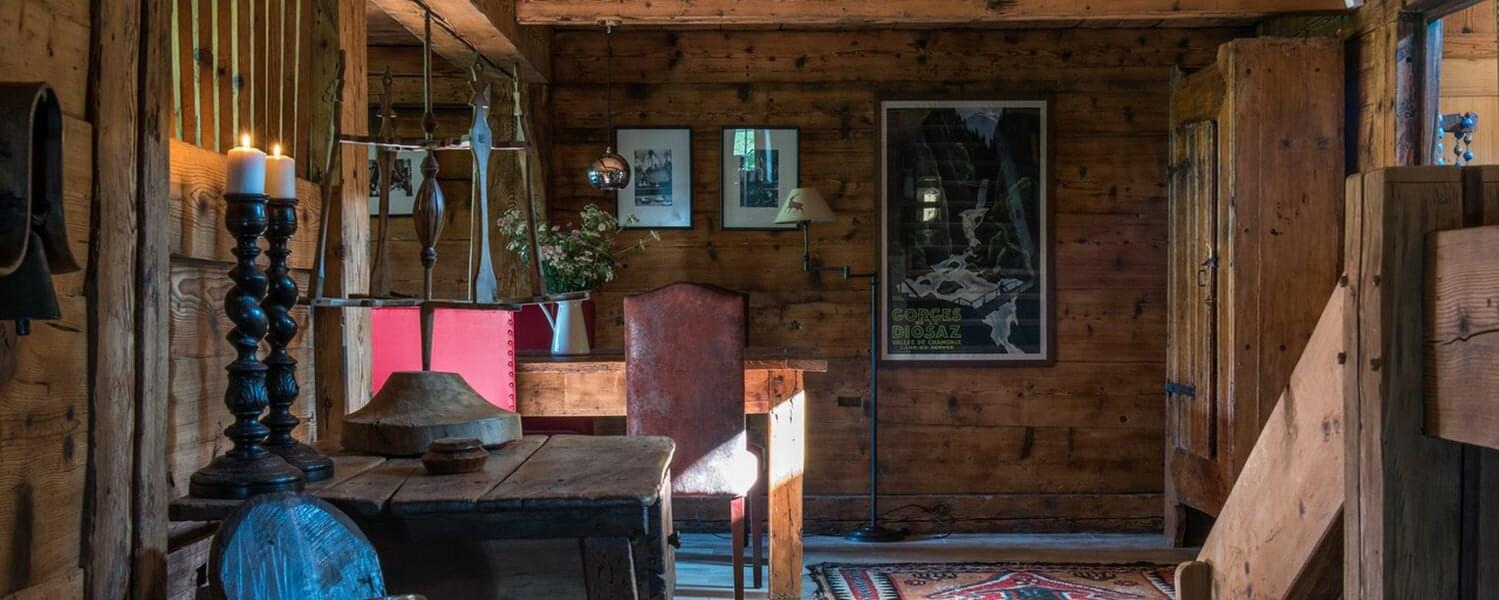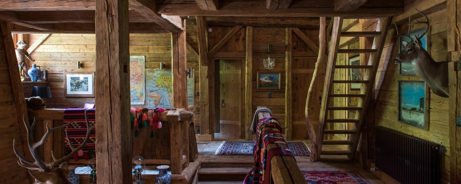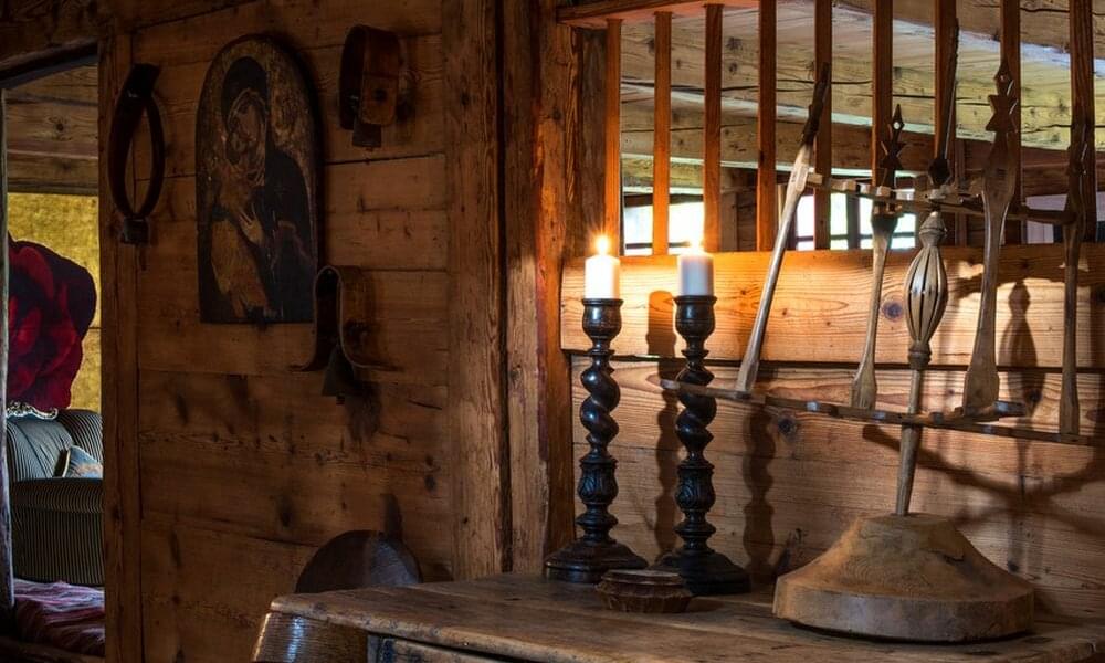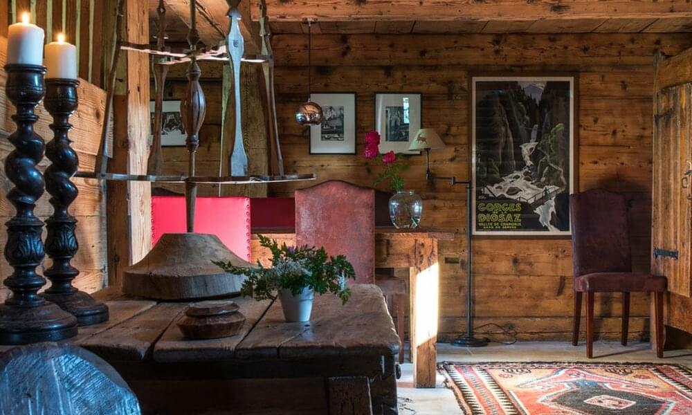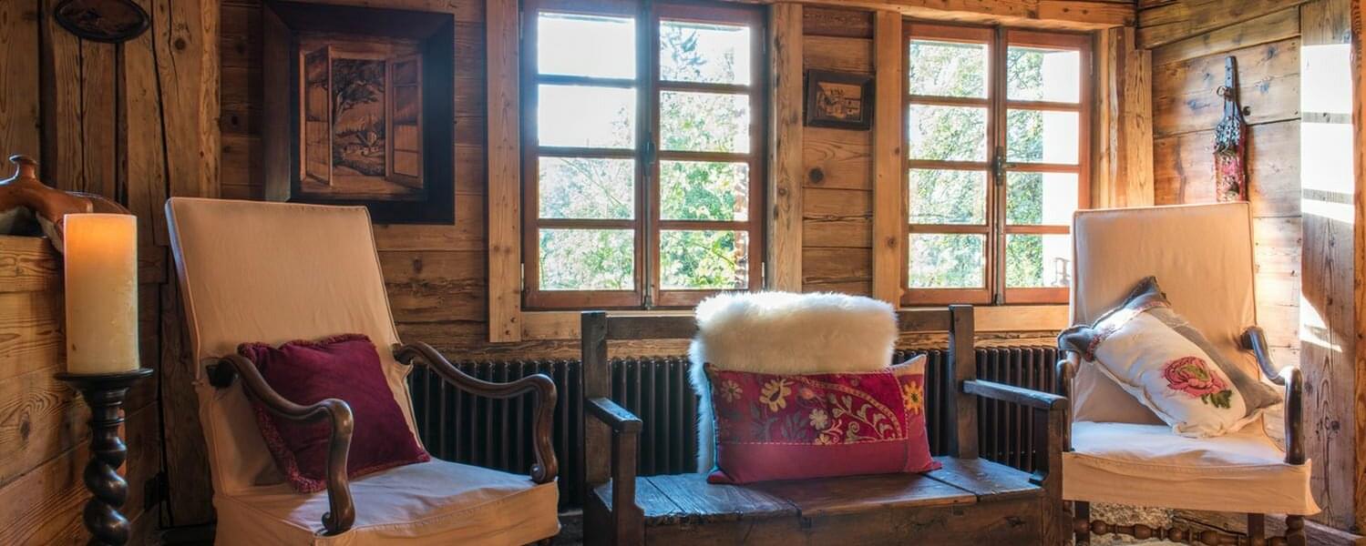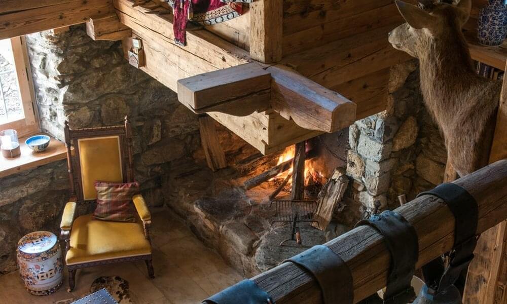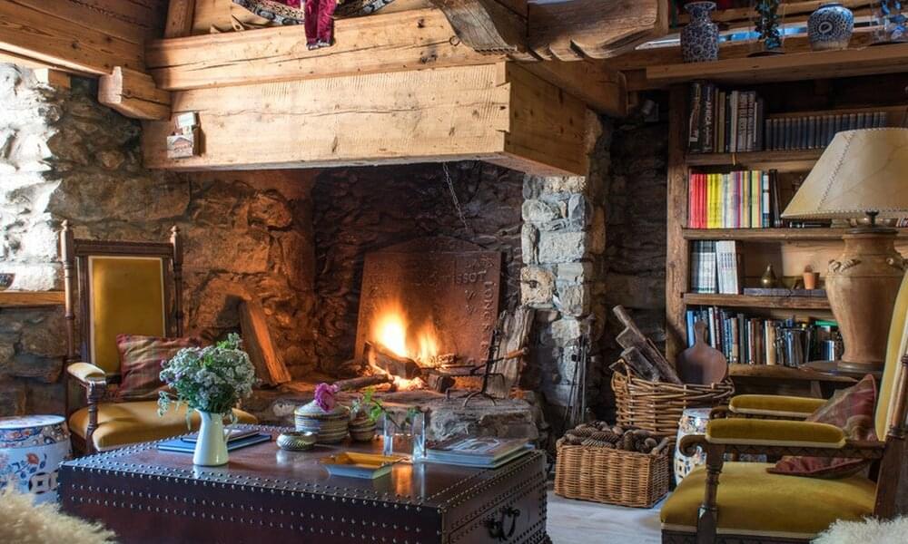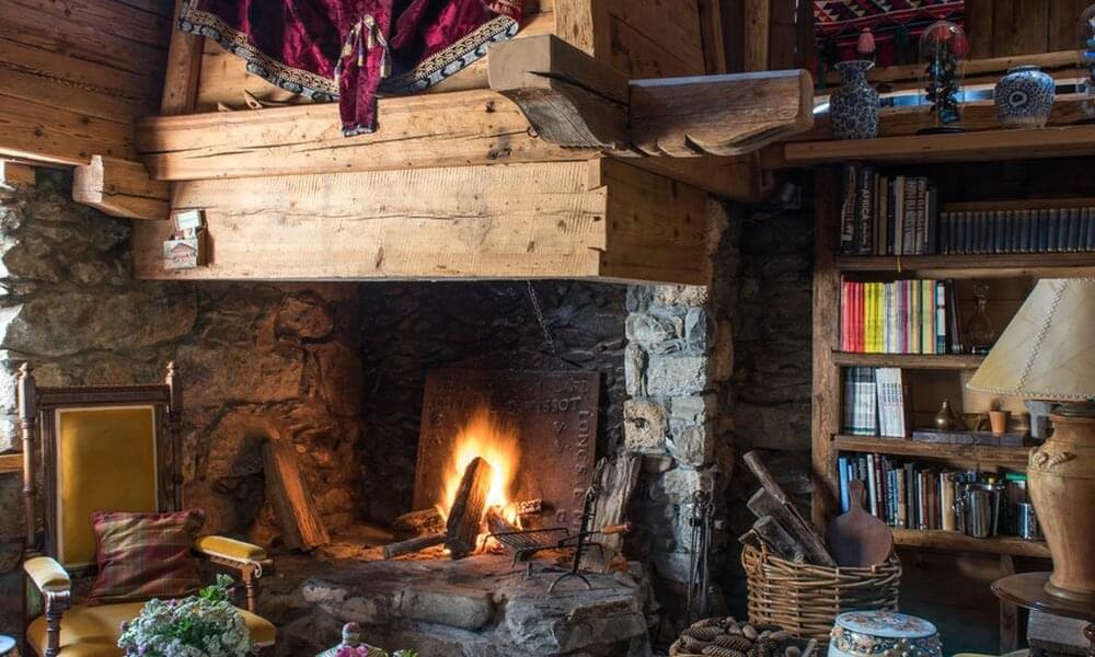 smoking fireplace. Decorated in a plush eclectic style, Chalet Megeve houses a collection of antique furniture and farm utensils