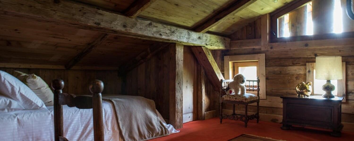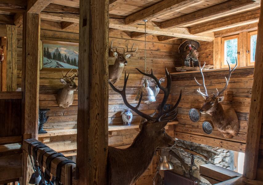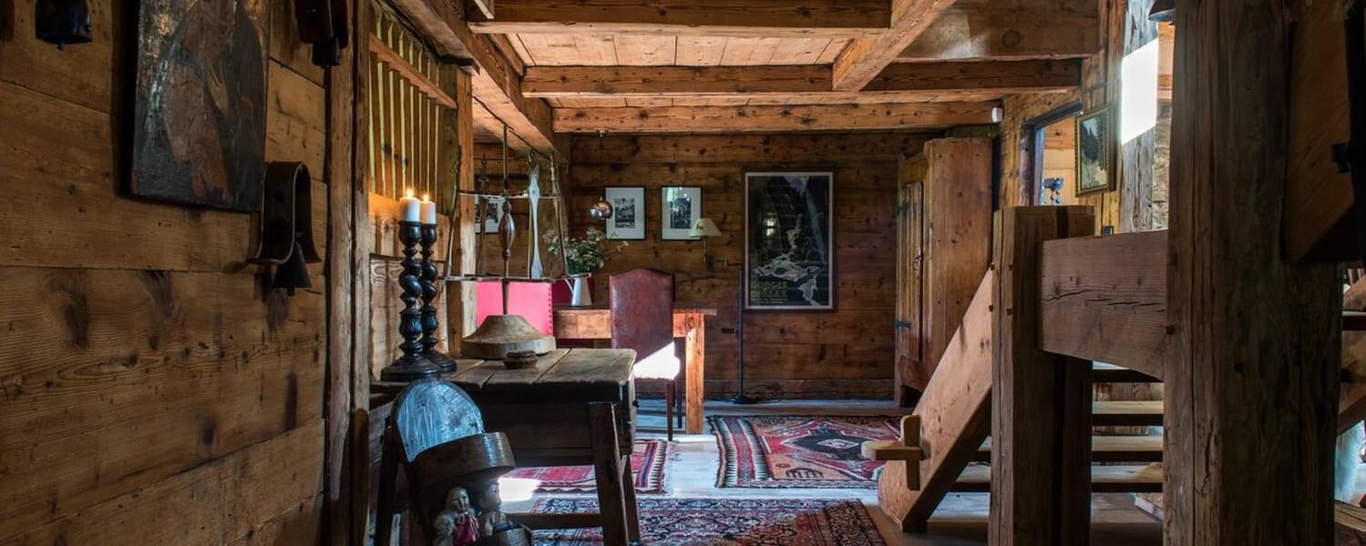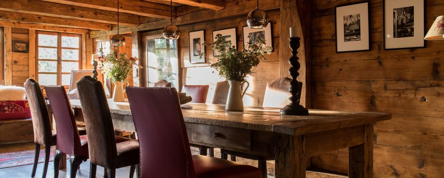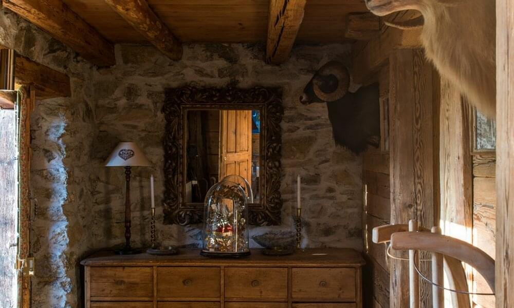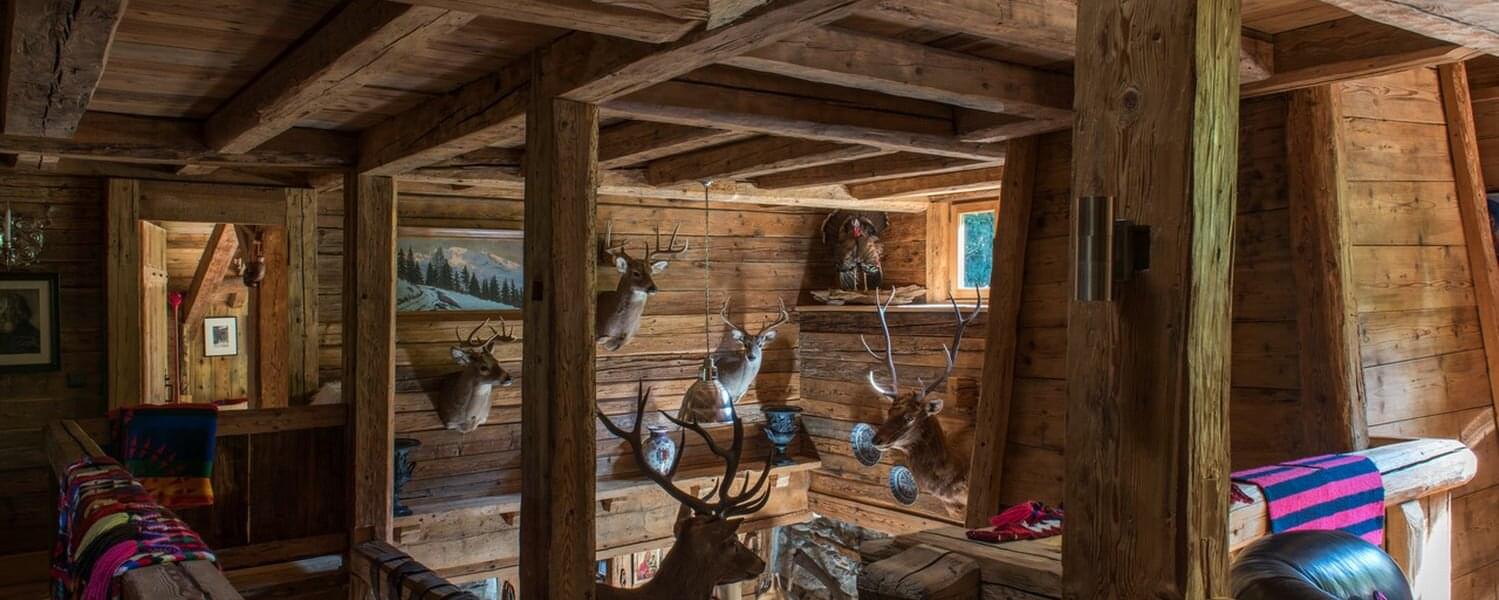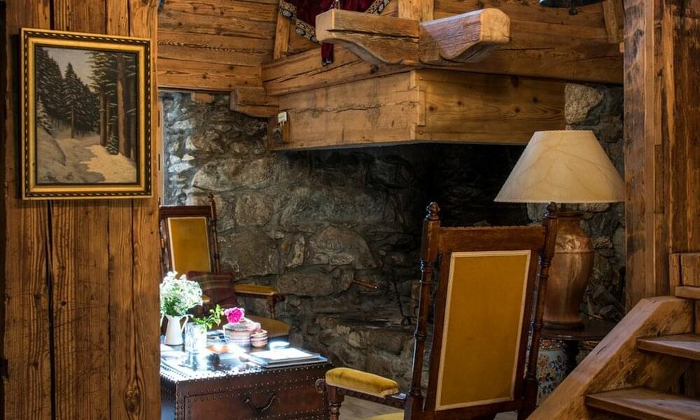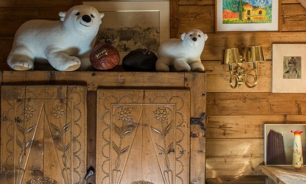 smoking fireplace. Decorated in a plush eclectic style, Chalet Megeve houses a collection of antique furniture and farm utensils