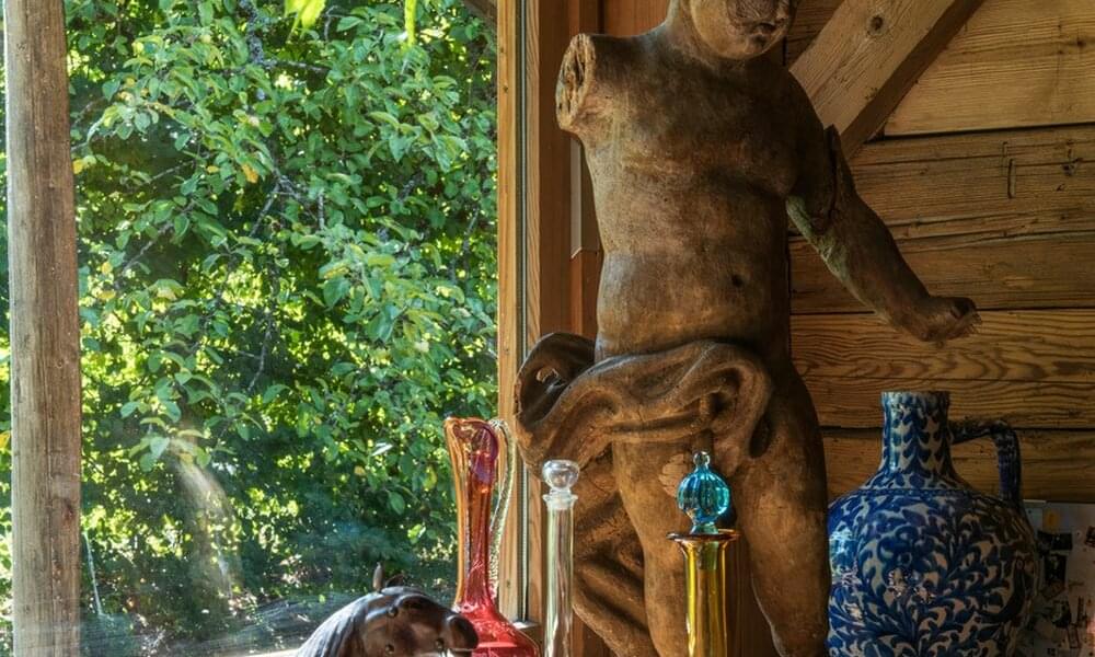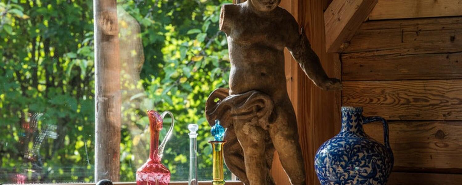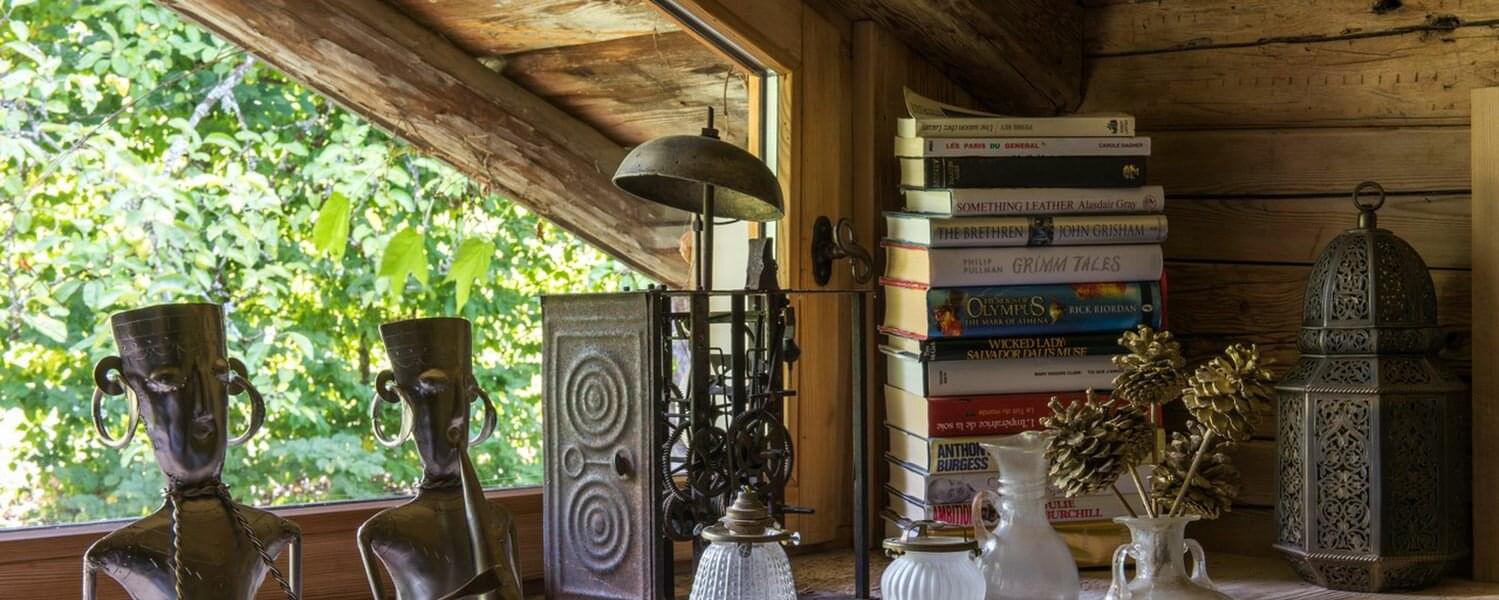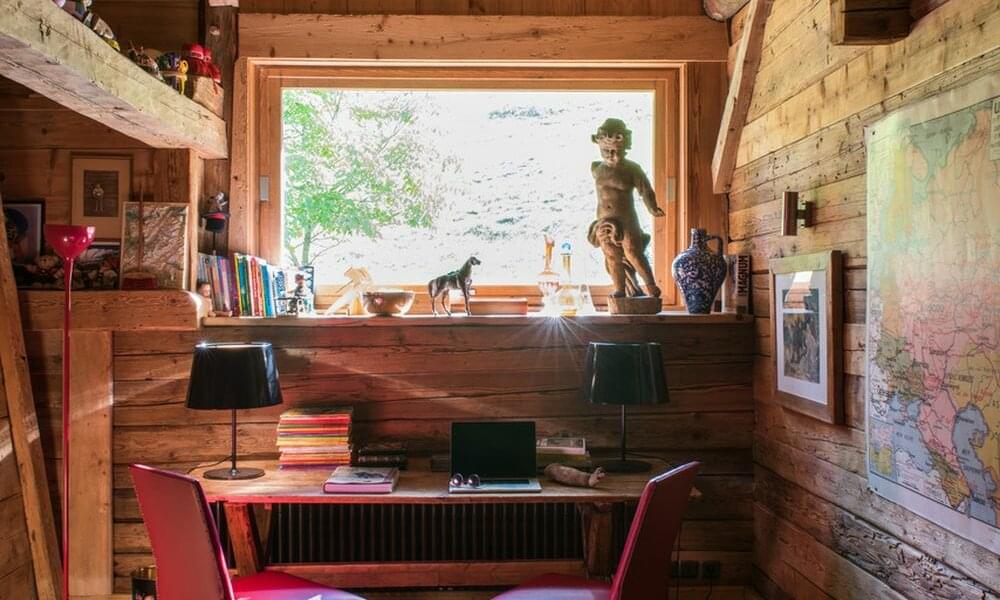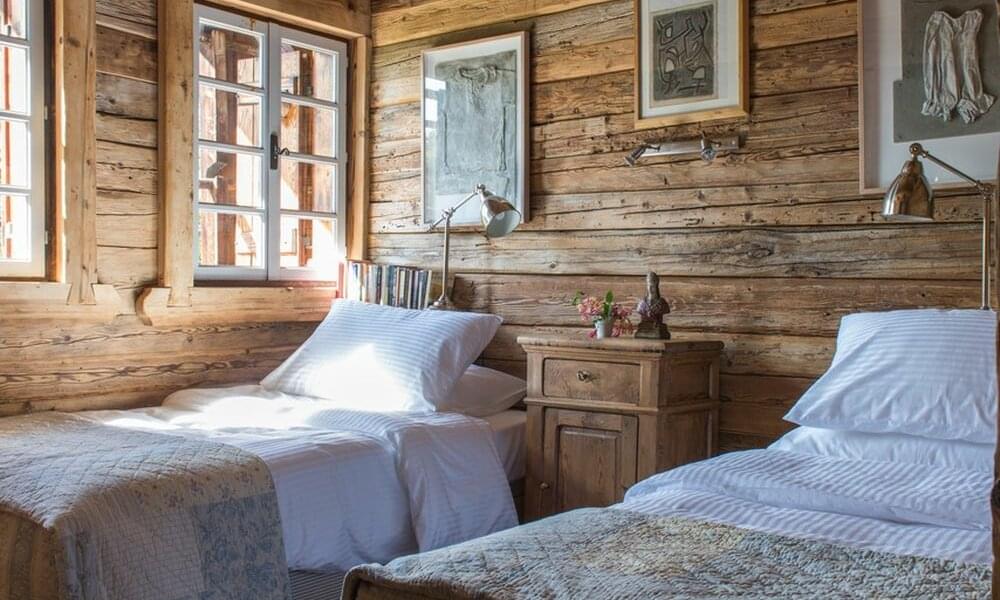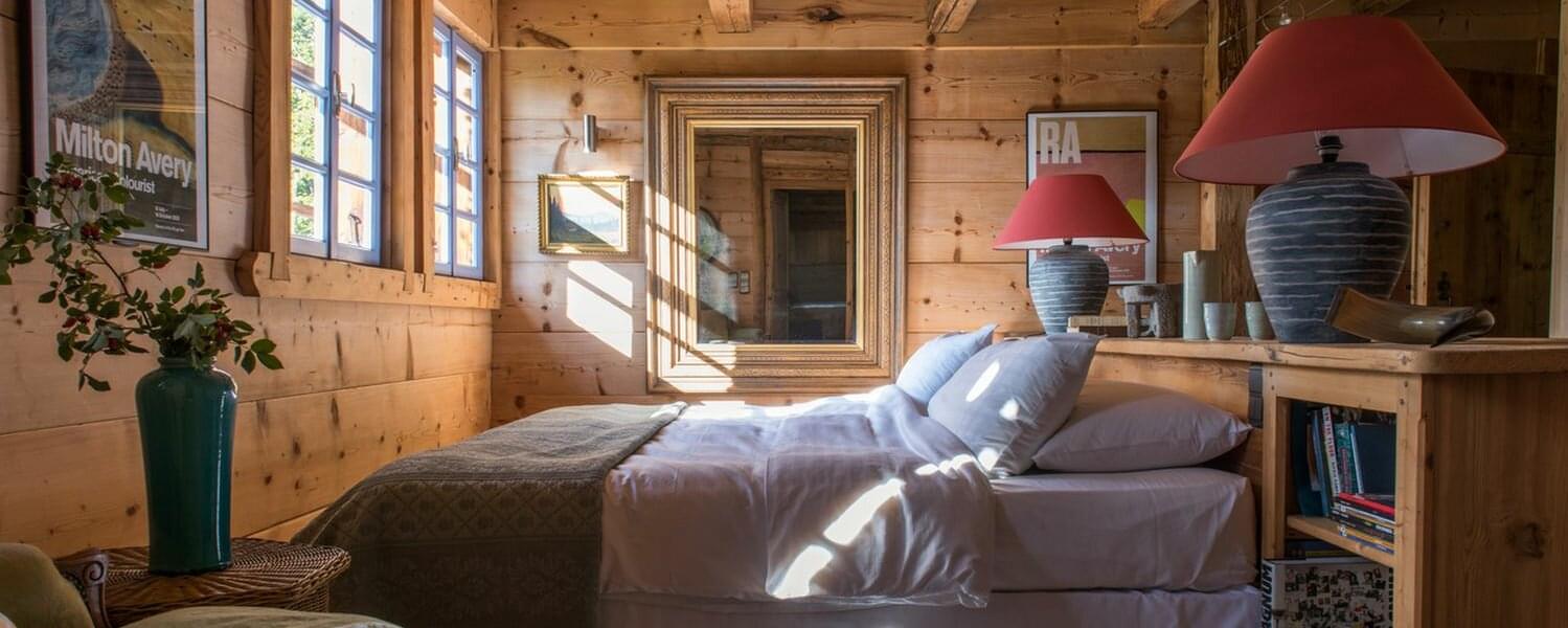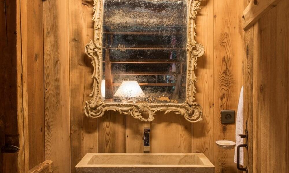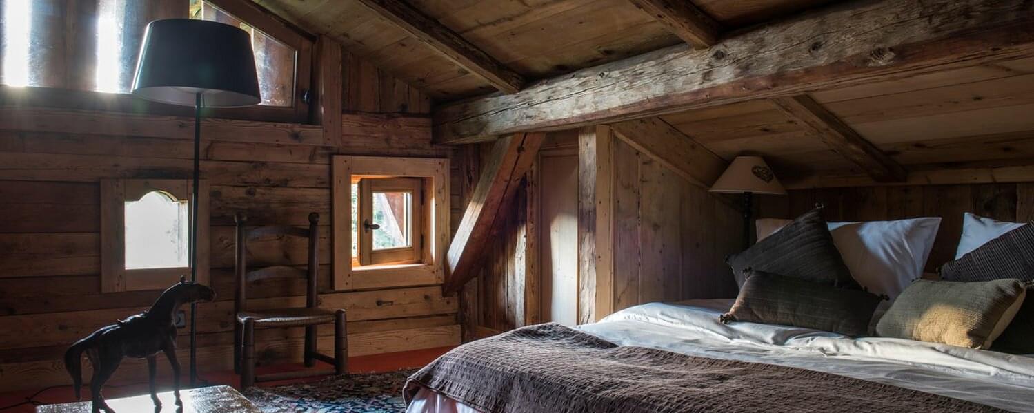 smoking fireplace. Decorated in a plush eclectic style, Chalet Megeve houses a collection of antique furniture and farm utensils