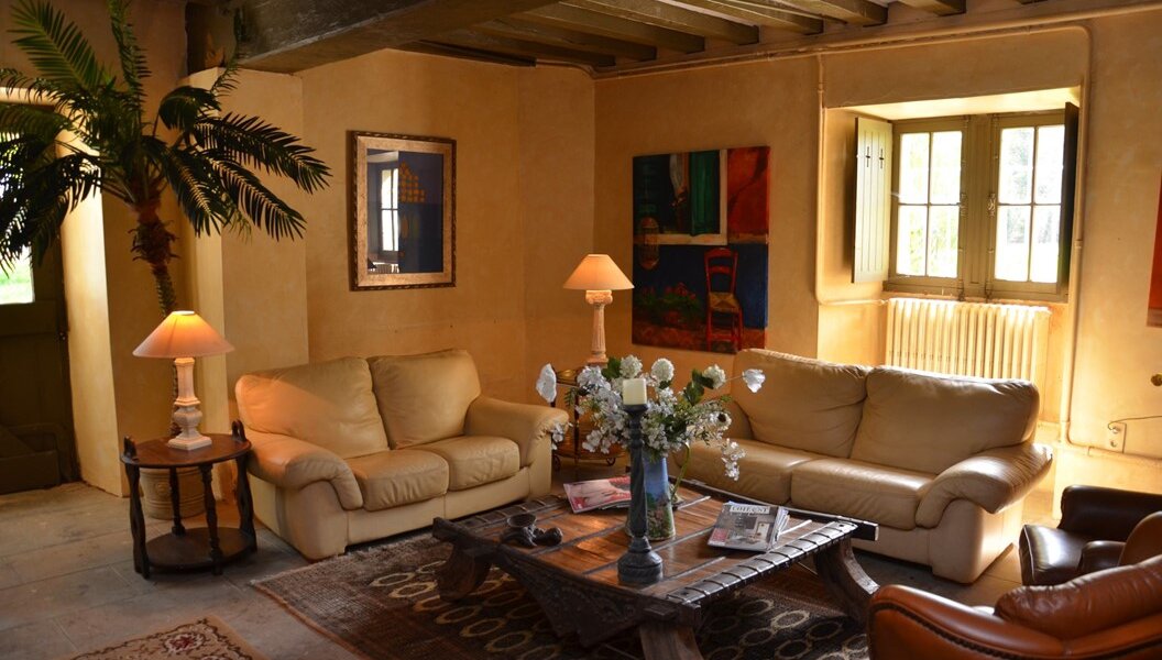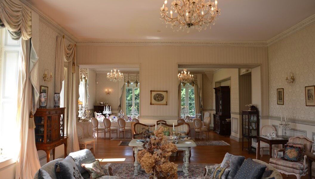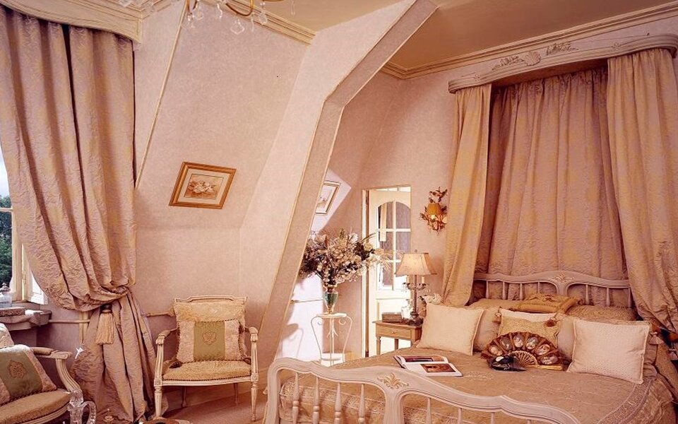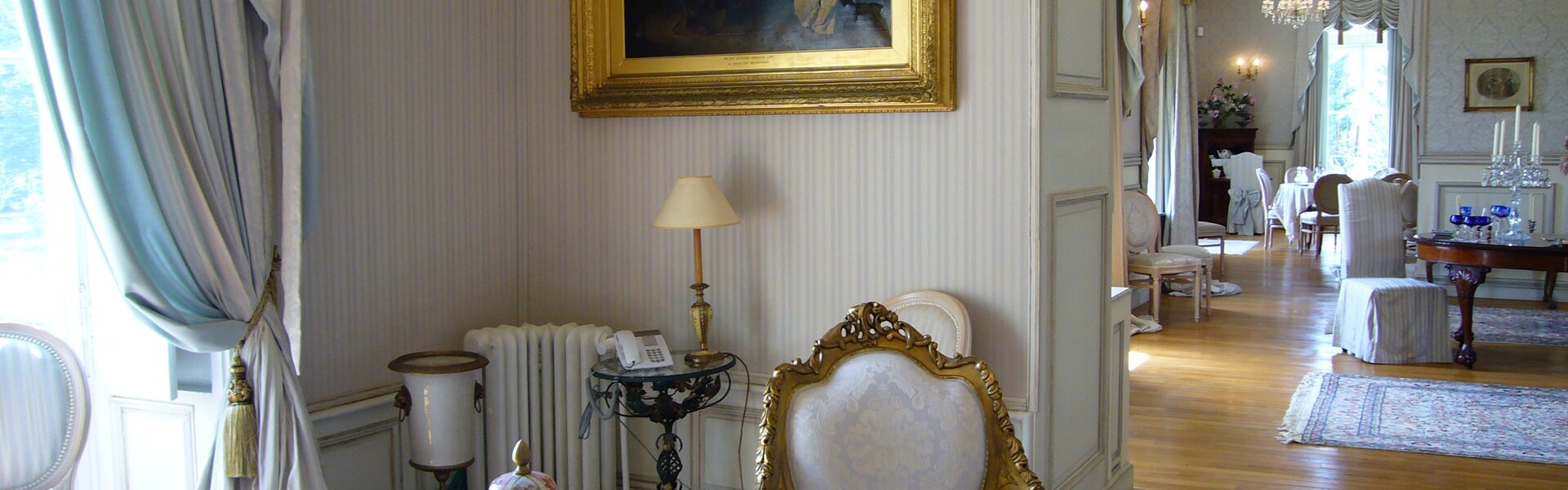The Chateau has been extensively renovated and sumptuously decorated with beautiful antiques and rich fabrics. Although majestic with its dramatic, double carved-stone stairway in the entrance hall, and elaborate 16.5 foot ceilings throughout the main floor, the Chateau is warm and welcoming. The Drawing Room is inviting with its oak paneling, huge log fireplace, and private lit terrace for early evening drinks and late night parties. The magnificent Grand Salon, with its parquet flooring, original oak linen paneling, tall windows, and massive mirrored fireplace mantle, offers a luxurious yet relaxed venue for gatherings both large and small. The Chapel, with its spectacular stone rib-vault ceiling, glorious stained-glass window, and gilded oak paneling is a consecrated haven for solitude and prayer.