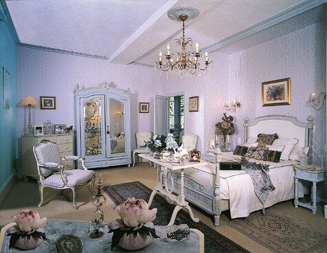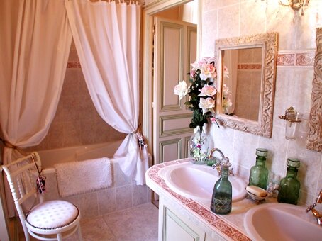 There are 12 ensuite, beautifully furnished bedrooms in the Chateau available to accommodate up to 15 Guests. Each is uniquely decorated in different color schemes ranging from azure to rose, and filled with antiques, crystal chandeliers and beds you never want to get out of! There is even a two-story master suite, with its own foyer, drawing room, and antique oak staircase leading up to a huge circular ensuite bedroom that has an original hand-painted domed ceiling. (Four bedrooms can be made suitable for young children, and the Chateau will gladly prepare for young children and ensure that the “breakable” items are removed and the house is child friendly.) There is also a nicely decorated apartment in the Chateau’s adjacent Manoir which will accommodate up to four guests (bringing the total capacity to 19 Guests) for an additional rental fee (please inquire). The Manoir has one queen size bed, one double bed and a full bathroom with bathtub.