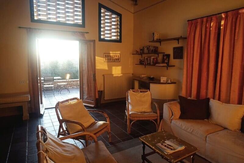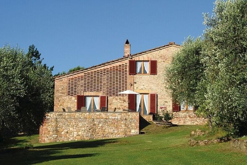 In the heart of the Chianti Classico region, this hillside estate offers a tranquil, classic Tuscan experience. Il Cipresso is a large house, surrounded by grass, simple gardens and olive groves. On the edge of a small 17th century village centered around a family villa, all the farmhouses have been restored. This house was renovated and furnished with special care to preserve the wood beamed ceilings and tile floors. The views are outstanding, particularly the view of Siena on its hill in the distance and the panoramic vista of rolling hills with vineyards and olive groves. Il Cipresso has an expansive terrace, suitably furnished for al fresco dining. The large swimming pool is set on a lower grassy terrace, surrounded by olive groves. For larger groups, note that four other houses and one apartment are available on the same estate. Check them out! They\'re called Chianti Estate-Cipressino, Chianti Estate-Torrino, Chianti Estate-Vineyard Villa, Chianti Estate-Scuola Piccola and Chianti Estate-Podere.