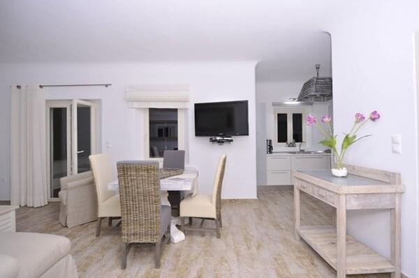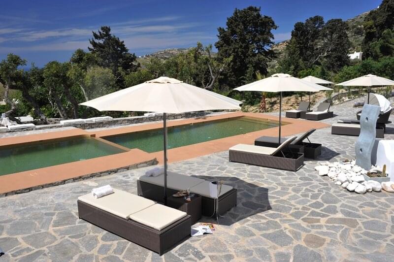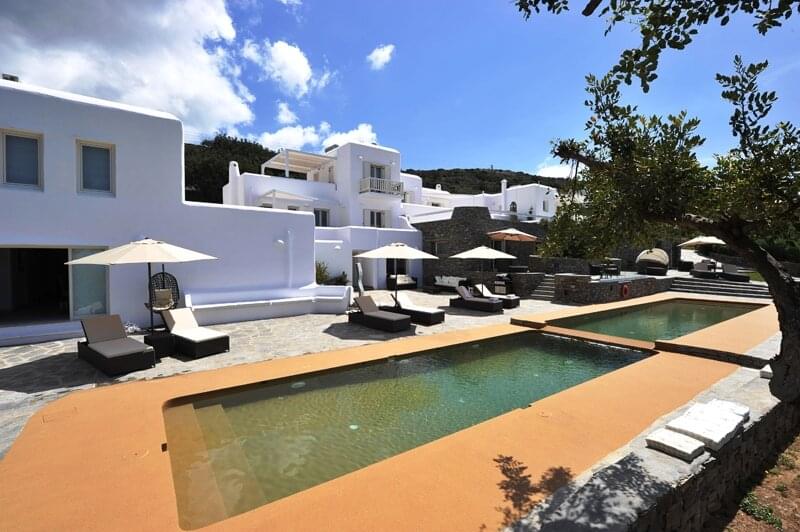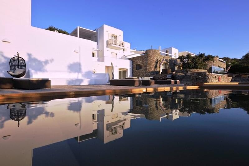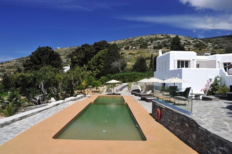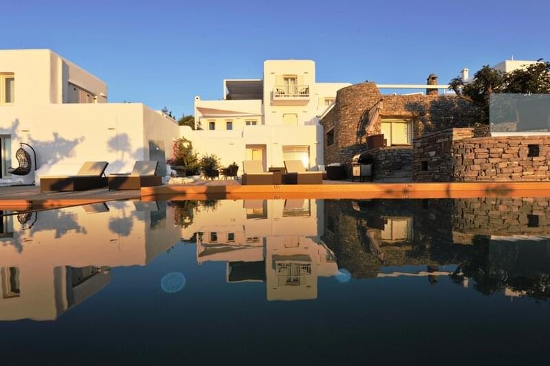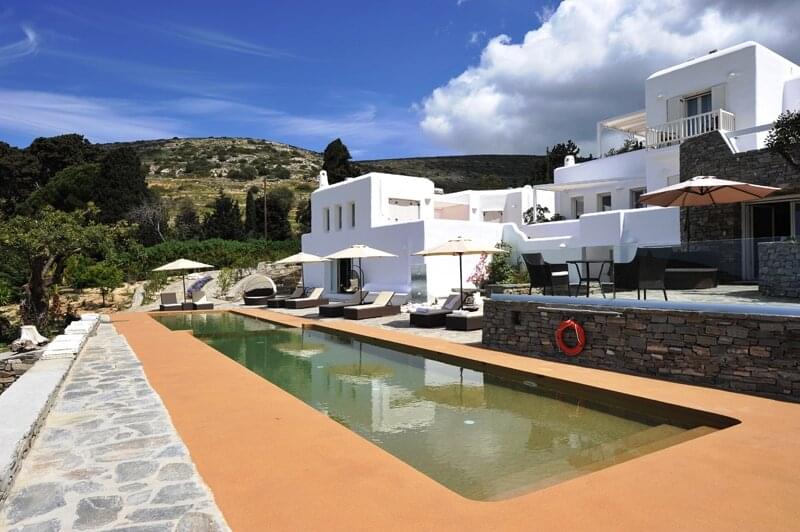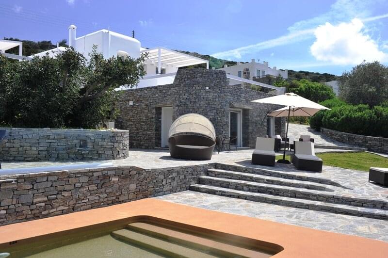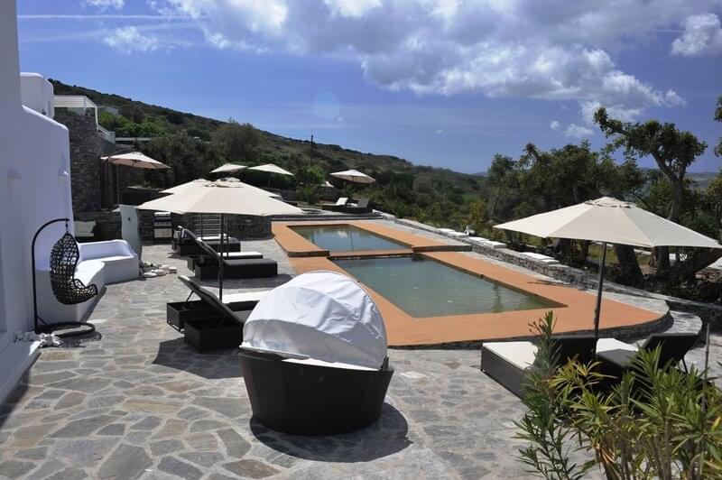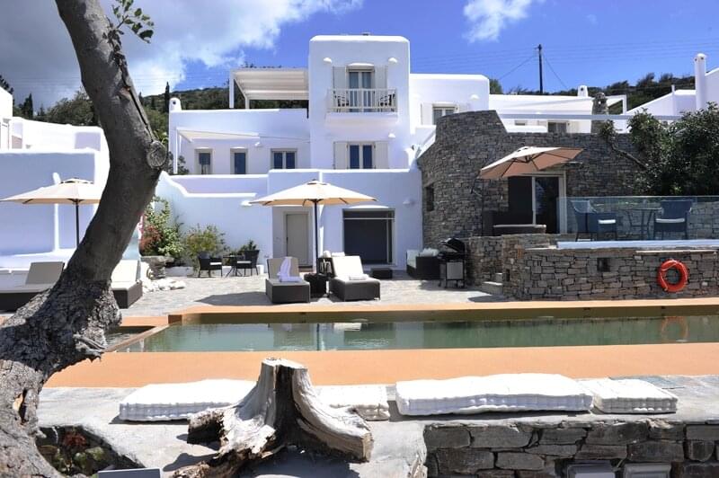 The Corinna Villas on Paros is a newly built complex of nine separate and autonomous homes. They are located on the west coast, just six km from the port of Parikia and five km from the local airport. The picturesque port of Punta and the beautiful beach of Agia Irini are located three km away making them ideal for day trips. Also nearby is the Valley of the Butterflies, a region that has running water and lush vegetation, an ideal home for hundreds of butterflies moving here during the summer months. Each villa shares a common pool area where there is plenty of room to relax and enjoy the pool, views and surroundings.