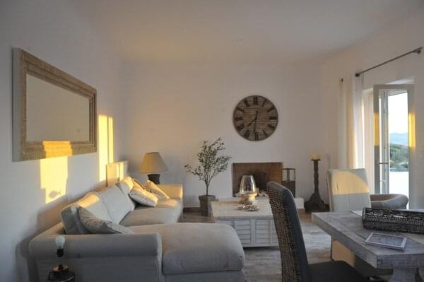 Corinna Villa Four is approx. 95 sq. meters. This lovely villa features a living/dining room with sofa, TV, fireplace, and dining table for four. The kitchen is well-equipped with fridge/freezer, stove, oven, microwave, toasters, kettle and coffee maker. Each double bedroom offers a queen-size bed, built in wardrobes, and air conditioning. The bathroom is equipped with a hydro massaging shower, toilet and sink. Outside is a spacious terrace furnished with patio furniture and offering spectacular sea views.