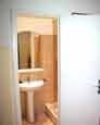 This studio apartment sleeps four people. There is a queen bed and a double sofa bed in the living room area. The full bathroom accented with granite and frosted glass has a bathtub with shower. The kitchenette has a small refrigerator, microwave, sink, toaster, hot pot, and coffee press. It\'s well suited for a light meal or snack. The apartment has wood floors and wood shutters.