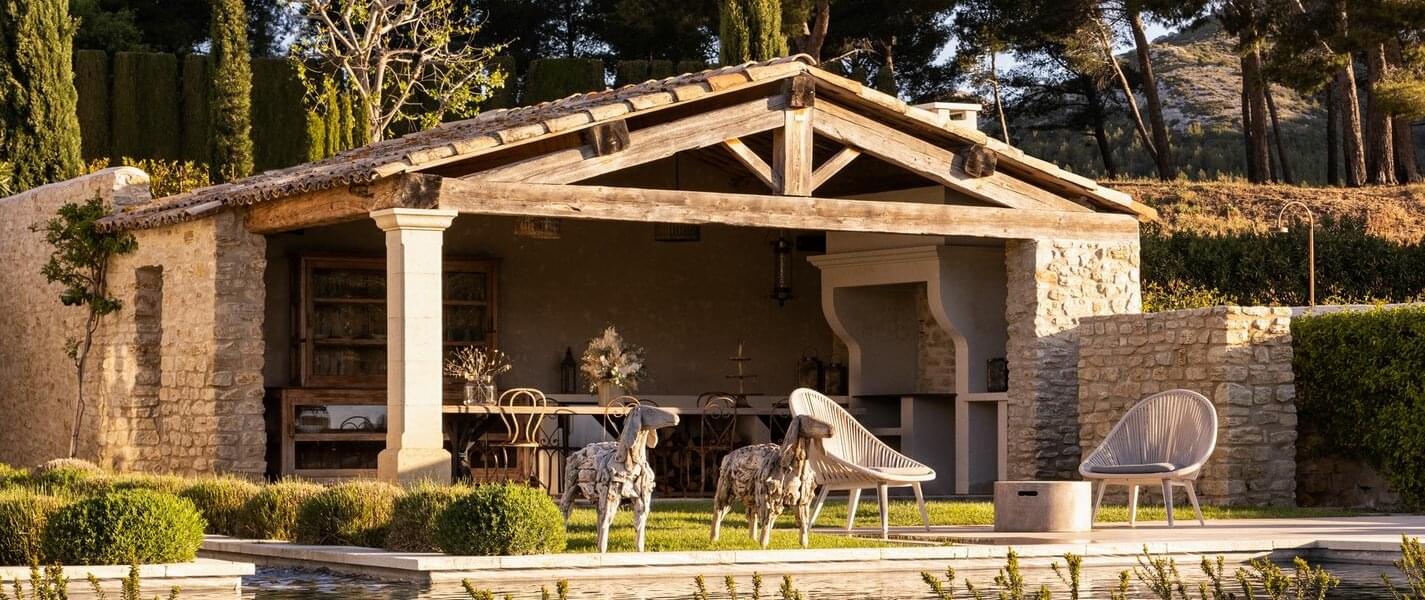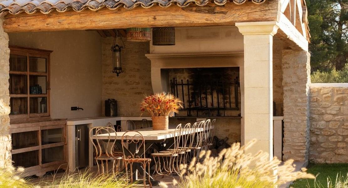 Mas Chic Alpilles is an 18th century Provencal Bastide of 350 sqm on two levels that can comfortably accommodate ten people with a garden on a 1 ha plot and a large heated overflow pool with breathtaking views of the Alpilles park. Several terraces and dining areas, including a cozy terrace for breakfast, a terrace with a table for twelve people in the shade of the roses and another dining area in the pool house, with a large table for fourteen people and the summer kitchen equipped with a barbecue.