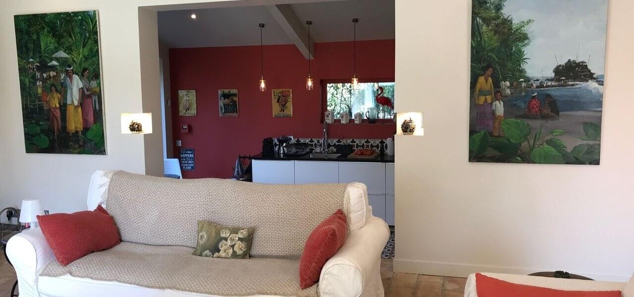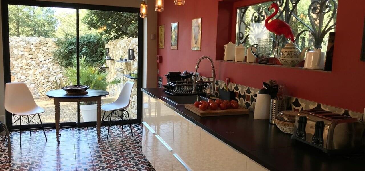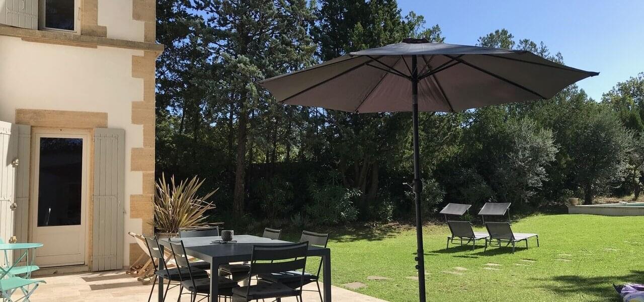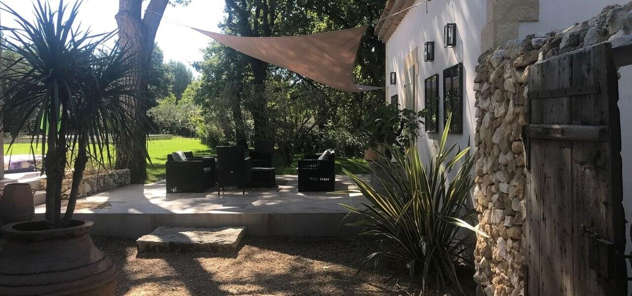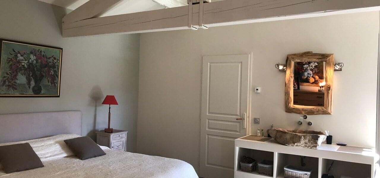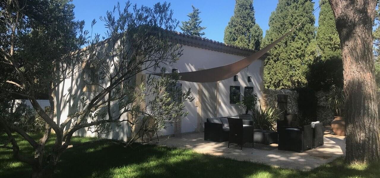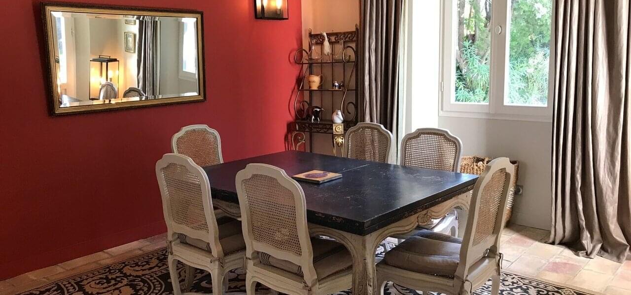 The stone mas is hidden from view behind a pretty walled garden with features that include a heated pool, several mature trees, covered and open terraces, and a boules court. There is space to park four cars. The mas has been renovated and decorated to a very high standard and furnished in a contemporary and complementary attractive Provencal style with vibrant art and muted colors. It\'s the perfect venue for an authentic Provencal vacation for a large group of friends or families traveling together.