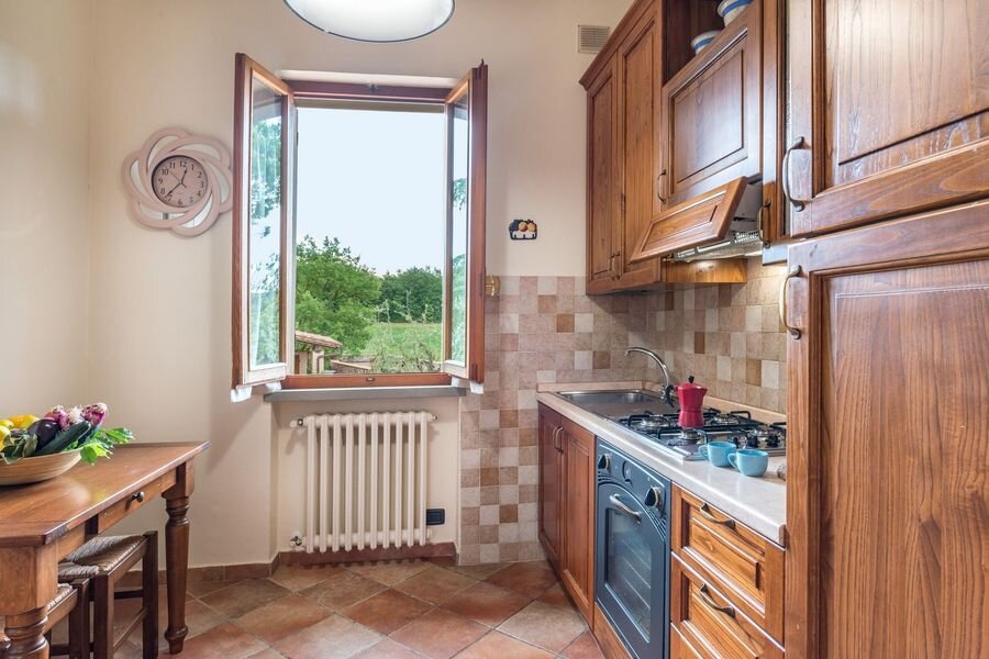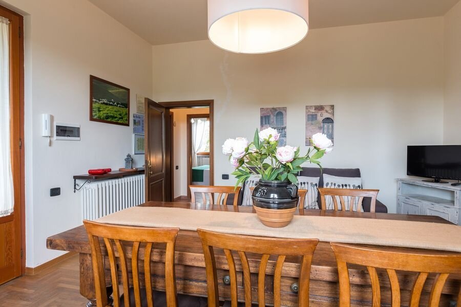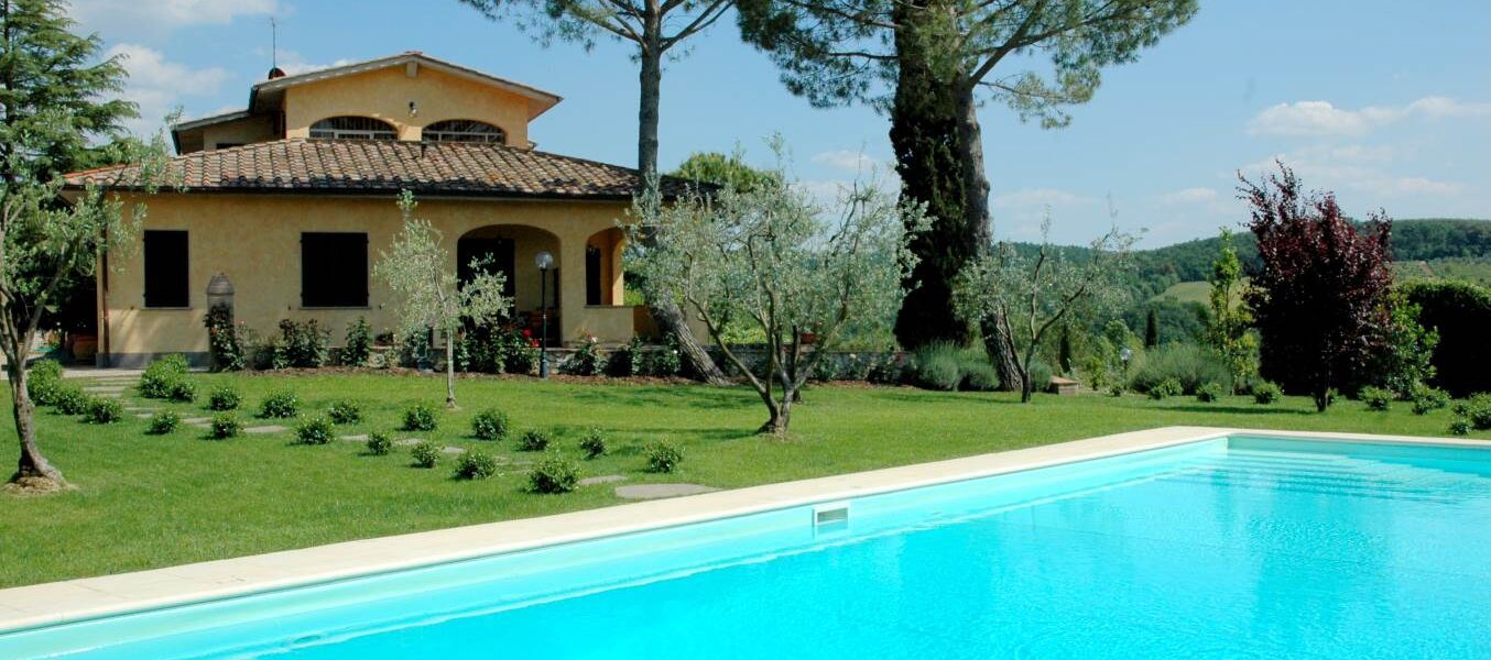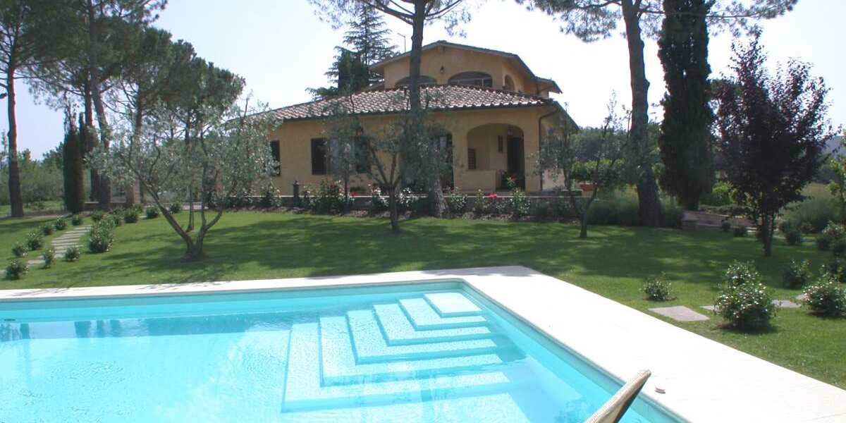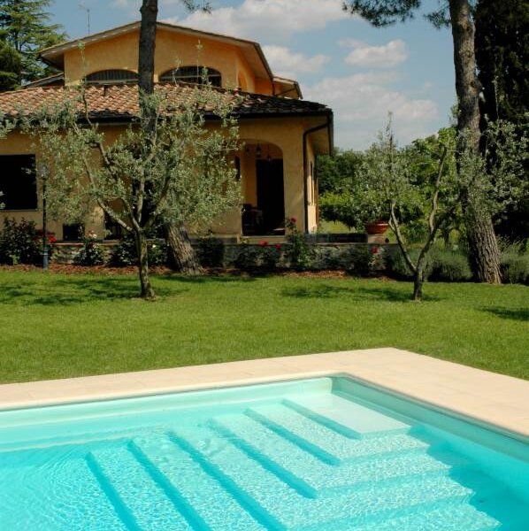 Immersed in one of the most beautiful areas of Tuscany, Il Chianti, and conveniently situated for visits to Siena, San Gimignano, Firenze and many other magnificent historical Tuscan villages, lies the newly restored villa Senese Estate. Surrounded by spacious grounds with a beautiful swimming pool (6 x 15 m – 1.00/2.40 m deep) with hydro-massage, the villa offers four lovely apartments each with private terrace with table and chairs for al fresco dining. Staggia Senese is the nearest village, 4 kms away from the property, where guests can find a restaurant, a supermarket, and a bank. Monteriggioni is 12 kms away.