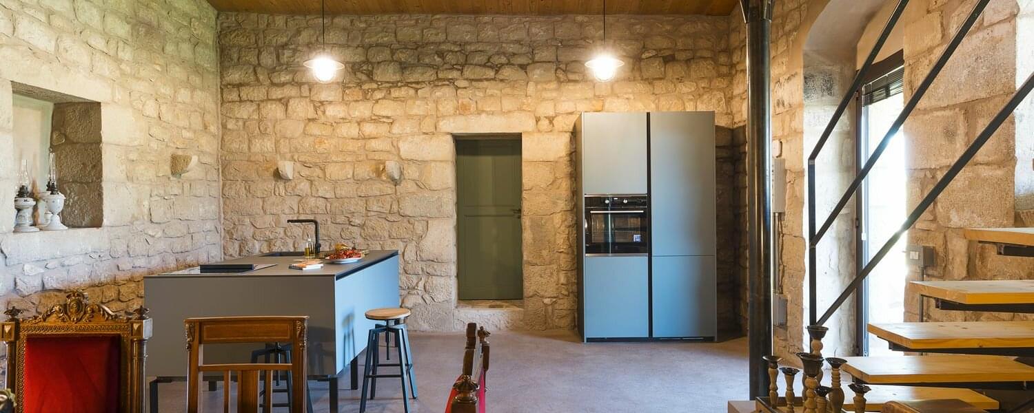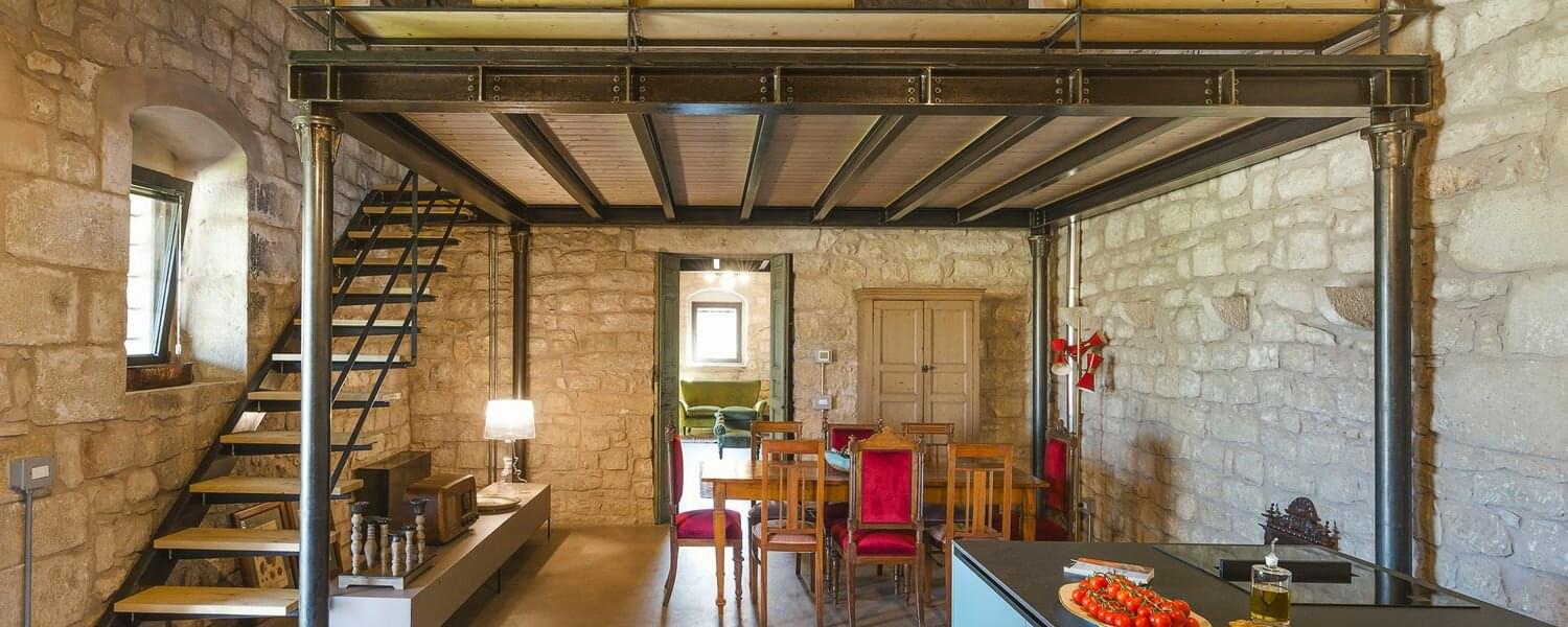 MAIN HOUSE: Ground Floor: Living room/kitchen with mezzanine (study with bookcase), living room with fireplace and mezzanine (double sofa bed), 1 bathroom with shower, 1 double bedroom (bed 160x200 cm) with en-suite shower. WITH EXTERNAL ACCESS: Living room with kitchenette, 1 double bedroom with en-suite shower; 1 double bedroom (bed 160x200 cm) with en-suite shower. ANNEX: Living room with kitchenette, 1 double bedroom (bed 160x200 cm) with en-suite shower.