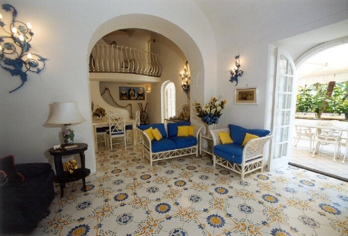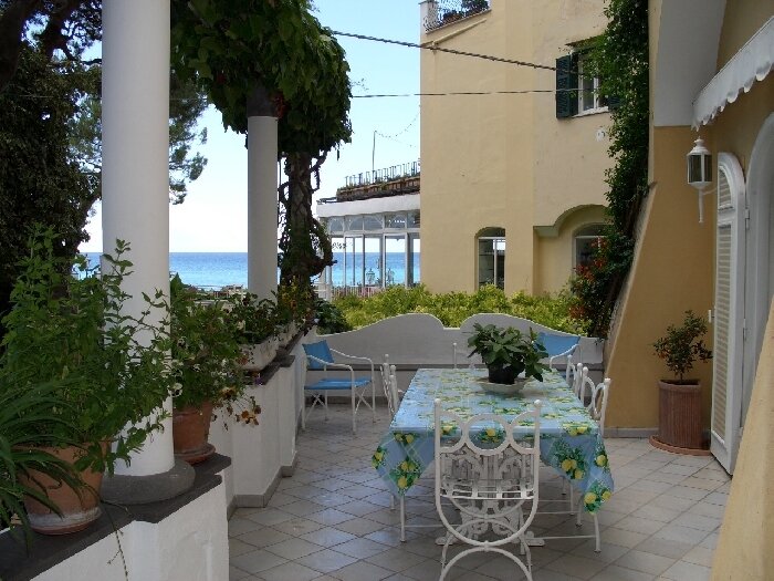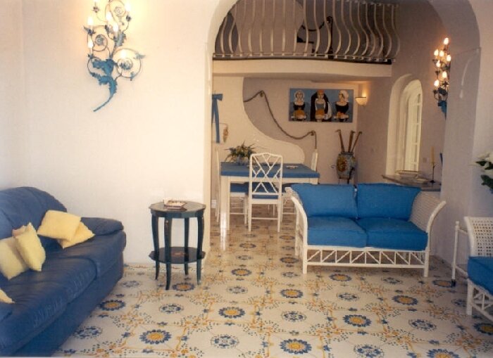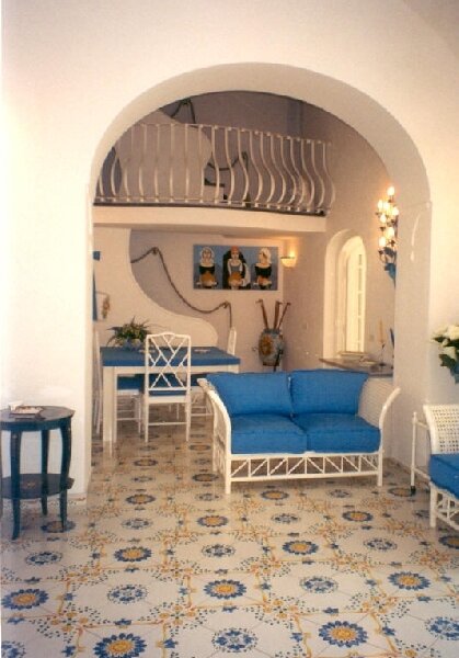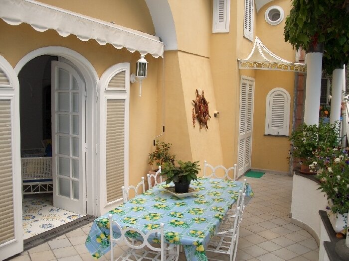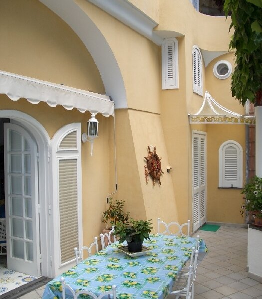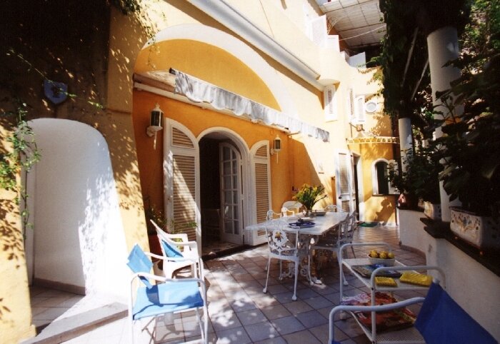Villa Barca is centrally located at Marina Grande, the main beach of Positano. From your doorstep, the fashionable and vibrant center of Positano is but a few steps away. Immerse yourself in the life of this charming and magical village; dine in gourmet restaurants and trendy seaside cafes, browse in designer clothing stores, admire the local art, or just go for a swim at the beach. Villa Barca is a spacious, independent house dating back to the 17th Century, spread over two levels and recently refurbished to a high standard. The owners have taken great care to add their personal touch and have decorated the villa in rich pastel tones and furnished it in an elegant Mediterranean fashion. There is a large terrace with an awning for shade, and plenty of garden furniture for dining or lounging. The terrace overlooks a lush garden adjacent to the villa.