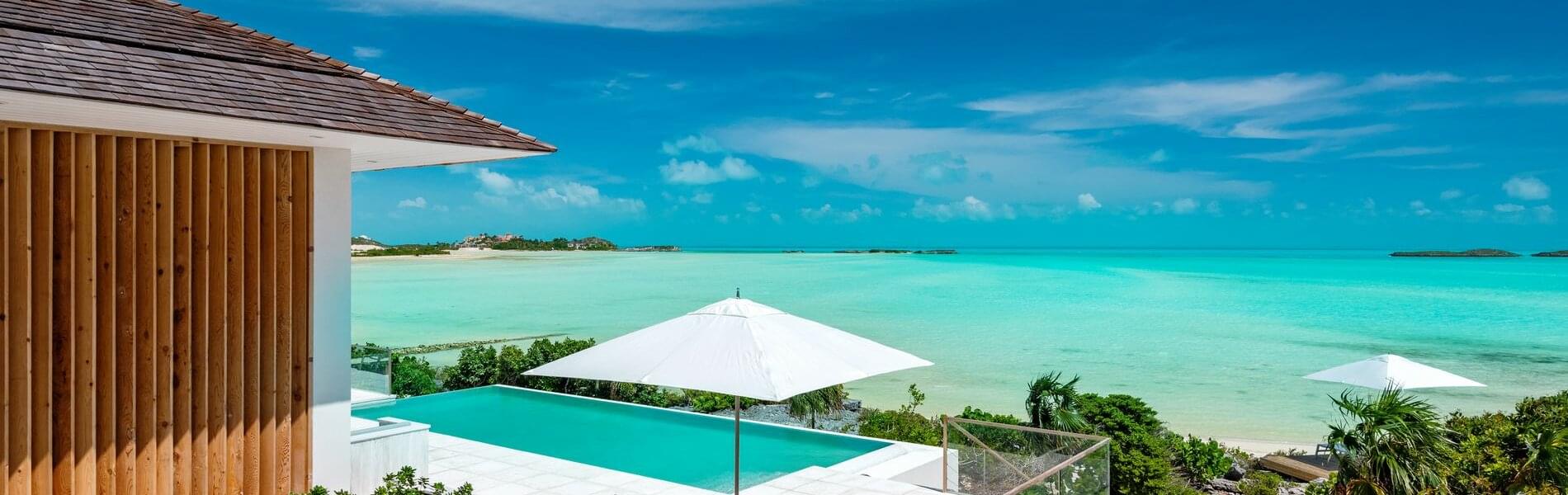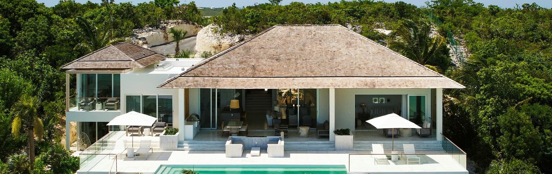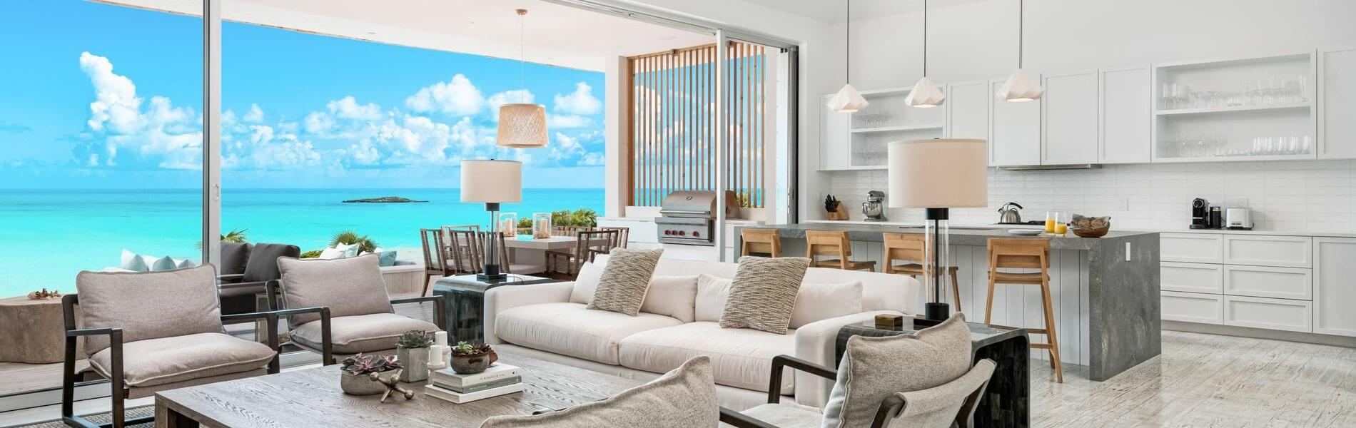 With views of the ocean from every room and enough space for eight people to spread out, Villa Bliss is a modern beach home nestled into the rocks above the shore and encircled by lush greenery. The shallow Caicos Banks extend out in front of the villa in an apparently unending stretch of serene, blue sea. The property is situated in the Turtle Tail neighborhood on the southern shore, on a beach so peaceful it will feel like yours alone.