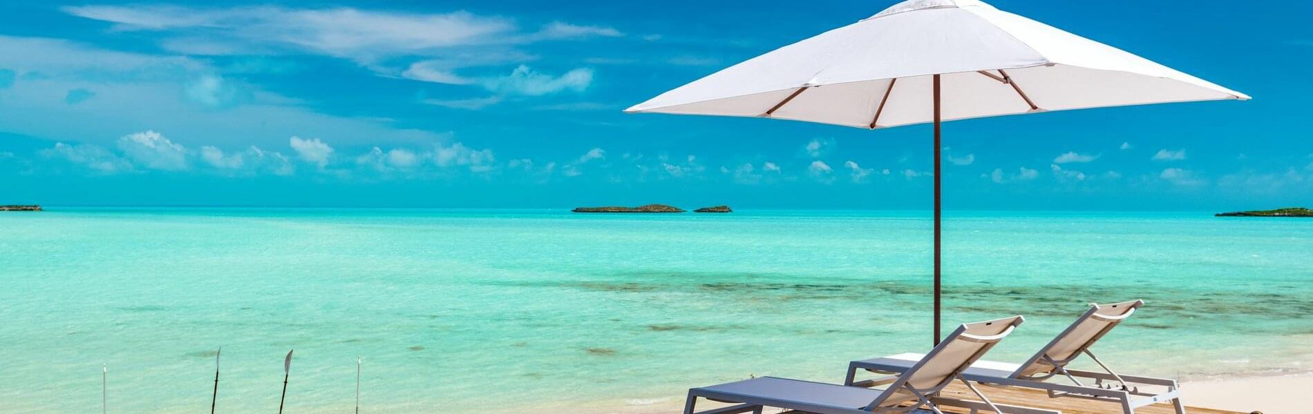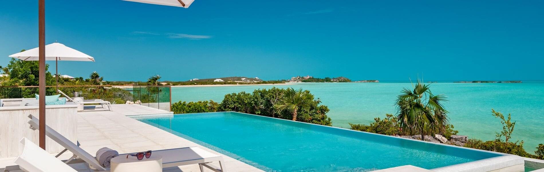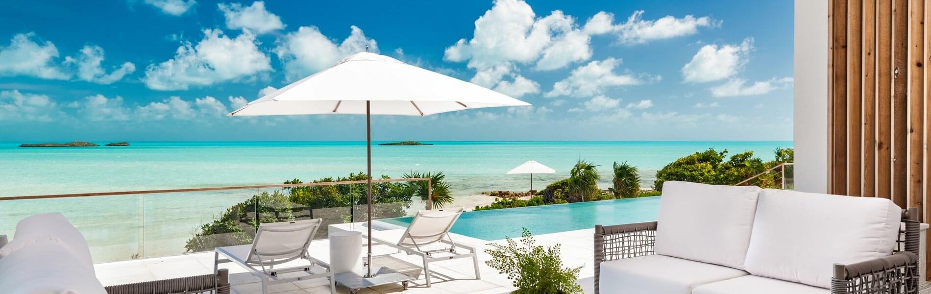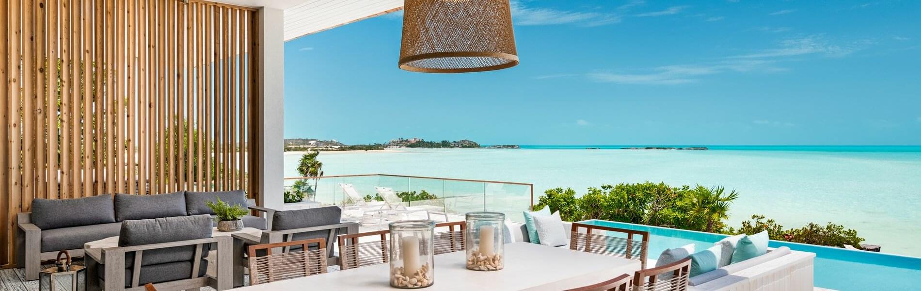 With views of the ocean from every room and enough space for eight people to spread out, Villa Bliss is a modern beach home nestled into the rocks above the shore and encircled by lush greenery. The shallow Caicos Banks extend out in front of the villa in an apparently unending stretch of serene, blue sea. The property is situated in the Turtle Tail neighborhood on the southern shore, on a beach so peaceful it will feel like yours alone.