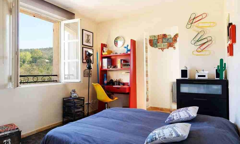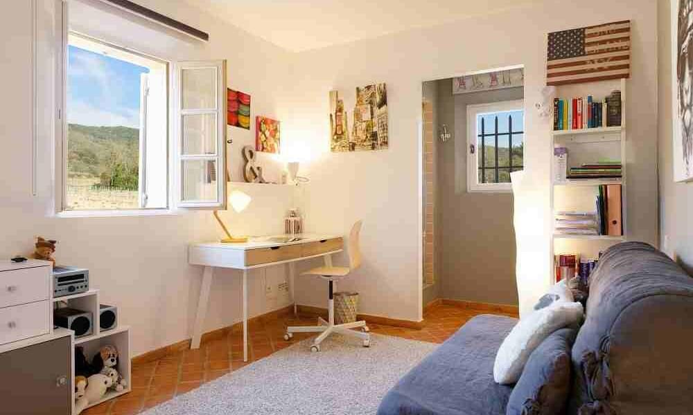 A spacious master bedroom (King size bed /180 cm) with covered terrace and view to the garden and pool below. The room is open plan with its bathroom with bathtub, double washbasin and separate toilet. There are two further double bedrooms (one with a 140 cm bed and the other with a 160 cm bed), ideal for children or teenagers. Both have en suite shower and washbasin and share a guest toilet on the landing.