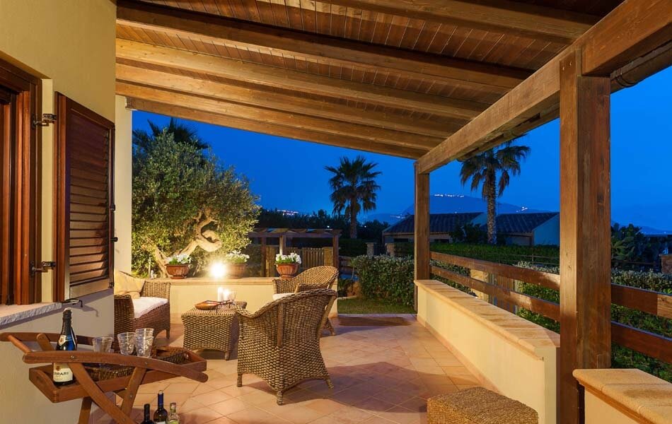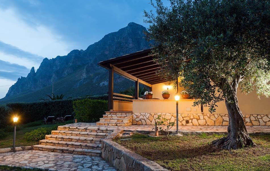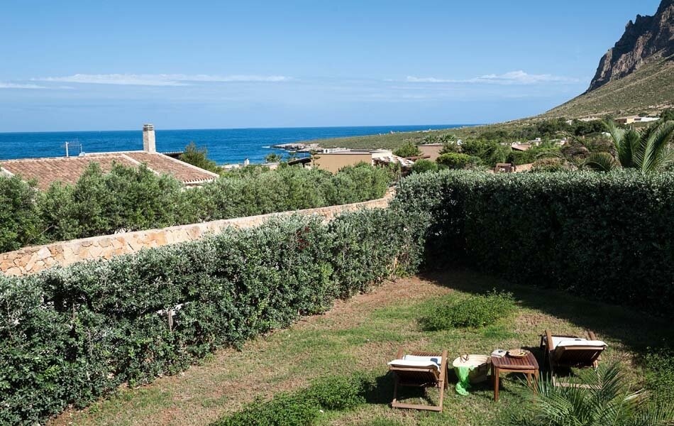 Villa Cornino is a beautiful Mediterranean-style villa just a few meters from the beach of Cornino, a well-known seaside resort situated below Monte Cofano, and between the towns of Erice and San Vito Lo Capo. This peaceful, sunny property is surrounded on three sides by a well-kept garden and spacious terraces with dining areas ideal for outdoor living. The villa has a friendly, welcoming floor plan and is tastefully furnished in a pleasant mixture of styles and with all modern conveniences. The rooms include a living room with fireplace and a study in a mezzanine, a kitchen, two comfortable bedrooms and a bathroom. The lower floor, with an independent entrance, contains a bedroom with a double sofa bed, kitchenette and bathroom. Villa Cornino is ideal for a holiday by the sea, for walks, and for excursions by boat or in the nearby Monte Cofano nature reserve. Locally, there are plenty of interesting places to visit, including the Zingaro Nature Reserve, the beautiful beach of San Vito lo Capo, the Egadi Islands offshore, medieval Erice, the historic center of Trapani, the salt pans of Marsala, and the temple of Segesta.
