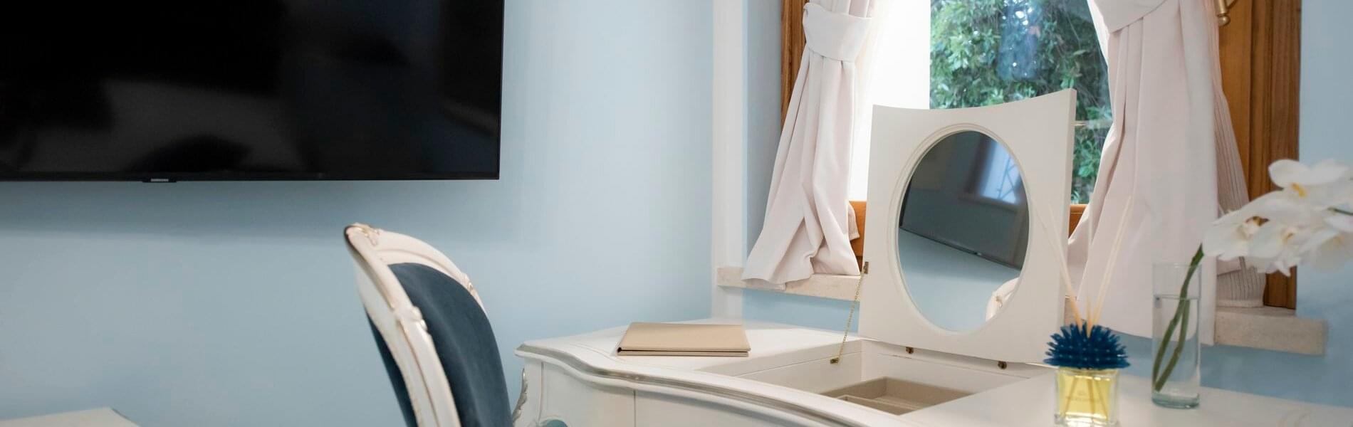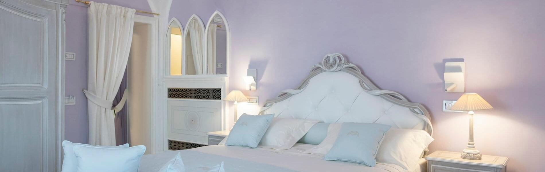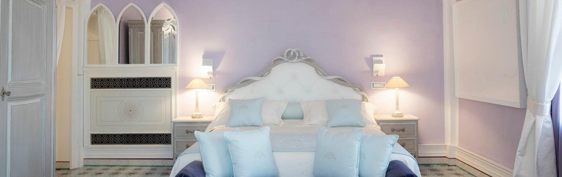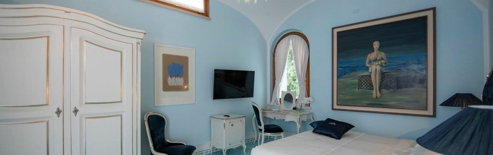The six units, which include deluxe rooms, junior suites, and suites, all have superb direct panoramic views of the sea, the Gulf of Salerno, and the Amalfi Coast below, with the exception of one, and are distributed and have the characteristics listed below. They are all outfitted with the most recent large TV screens, mini-bars, valuable works of art and paintings, Murano glass chandeliers and wall sconces (Venice), safes, chromotherapy showers and amenities, bathroom and courtesy sets and five-star hotel accessories.