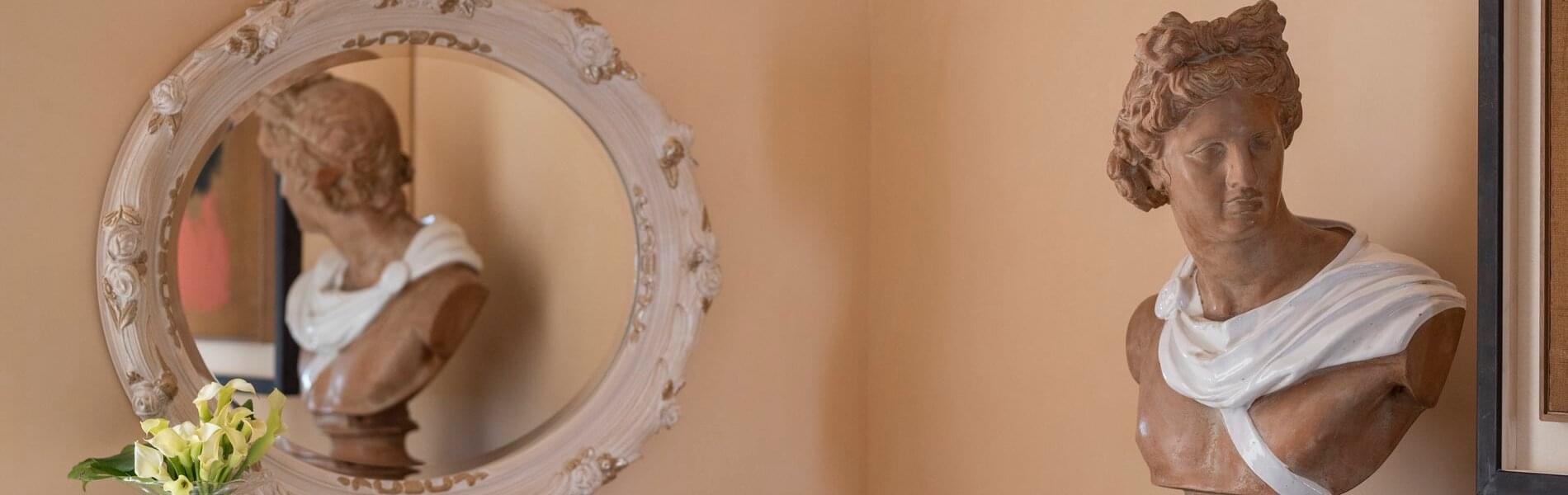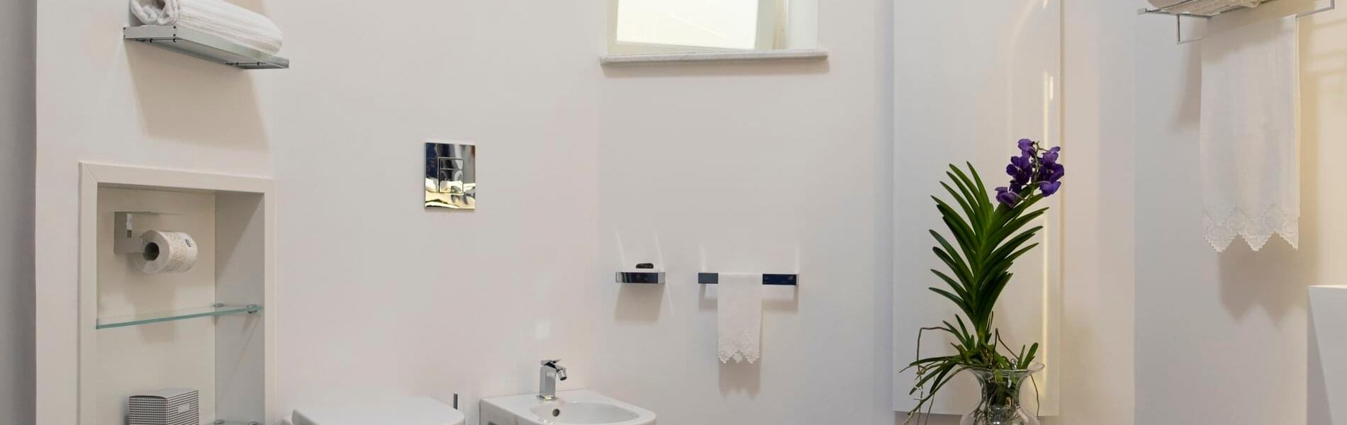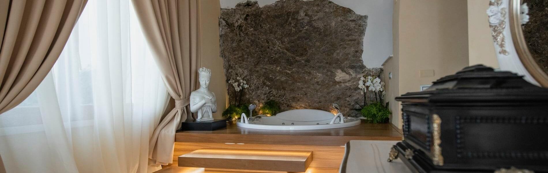 The internal rooms, all equipped with air conditioning, allow you to enjoy the Villa even for extended stays, for friends and families, with 6 units including suites, junior-suites, and deluxe rooms, for a total of 6 beds. The Villa boasts well-maintained rooms with antique ceramic or mosaic floors, fine furniture, and valuable artwork throughout. All rooms have bathrooms with a large bathtub, shower, and chromotherapy. One of the two suites also includes a Jacuzzi set in the rock. The rooms offer stunning views from their panoramic terraces and verandas, and include a mini-bar.