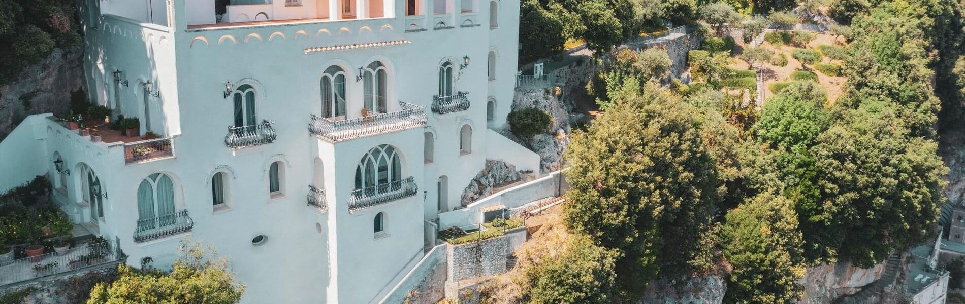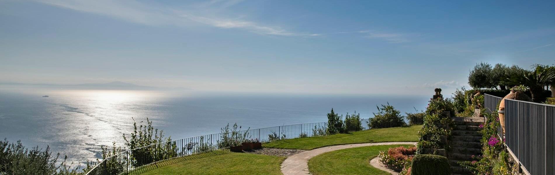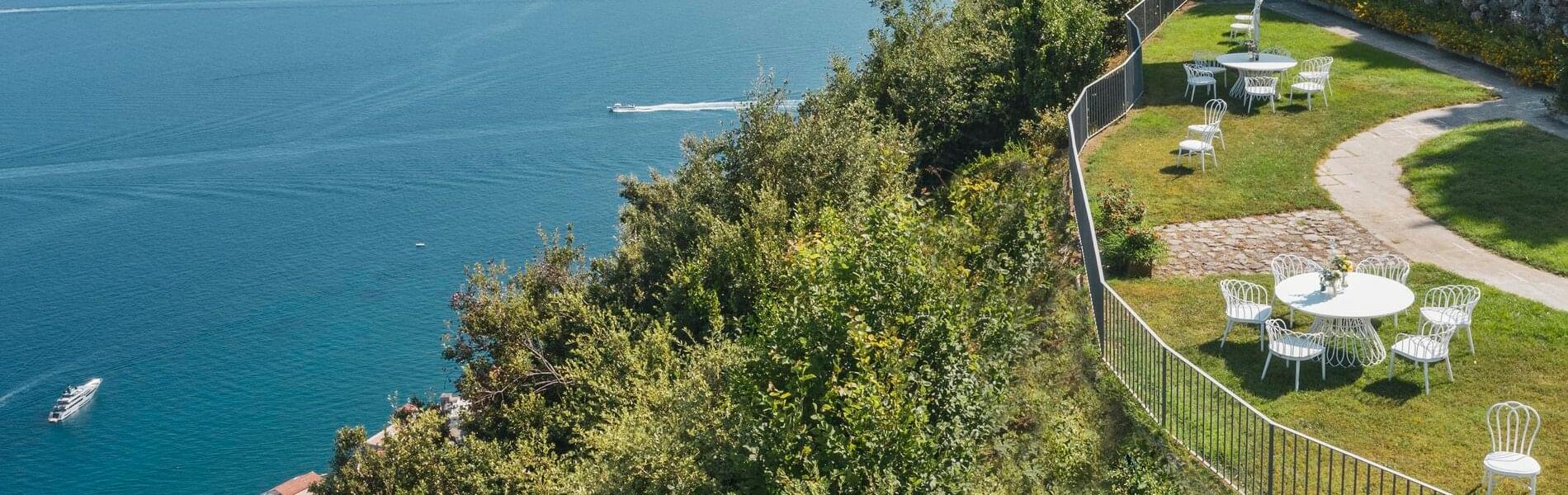Villa Hirondelle, an elegant historic residence set in terraced gardens with breathtaking views of the Amalfi Coast and the Gulf of Salerno, is reminiscent of a fairytale. The Villa is nestled in a stunning park, resembling a swallow's nest suspended over a breathtaking overhang. It offers high standards of confidentiality and privacy.