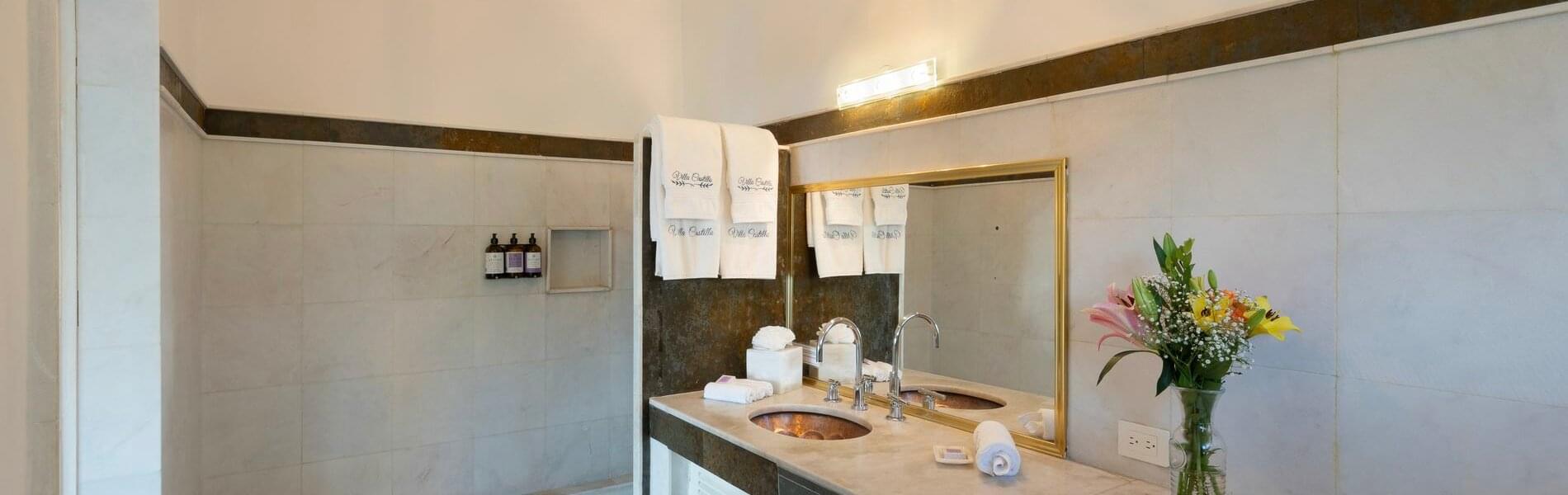 Each room had an en suite bathroom, which was so helpful, and the pool and lounge chairs were so nice. There was plenty of space to host group dinners and just hang out outside and enjoy the incredible view. It was easy to get to town through cars arranged by Carla or Ubers. We had a fantastic experience and no constructive feedback, everything was perfect!