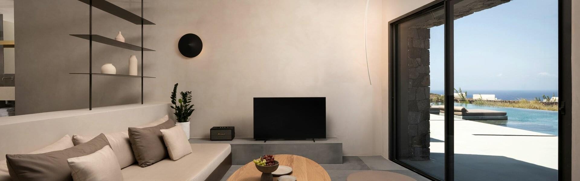 It is a fusion of Cycladic architecture, contemporary minimalism, and high-end finishes, clad inside and out with premium Greek marble.
