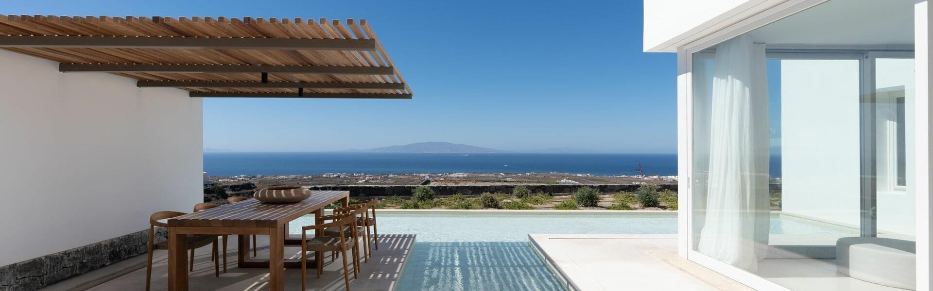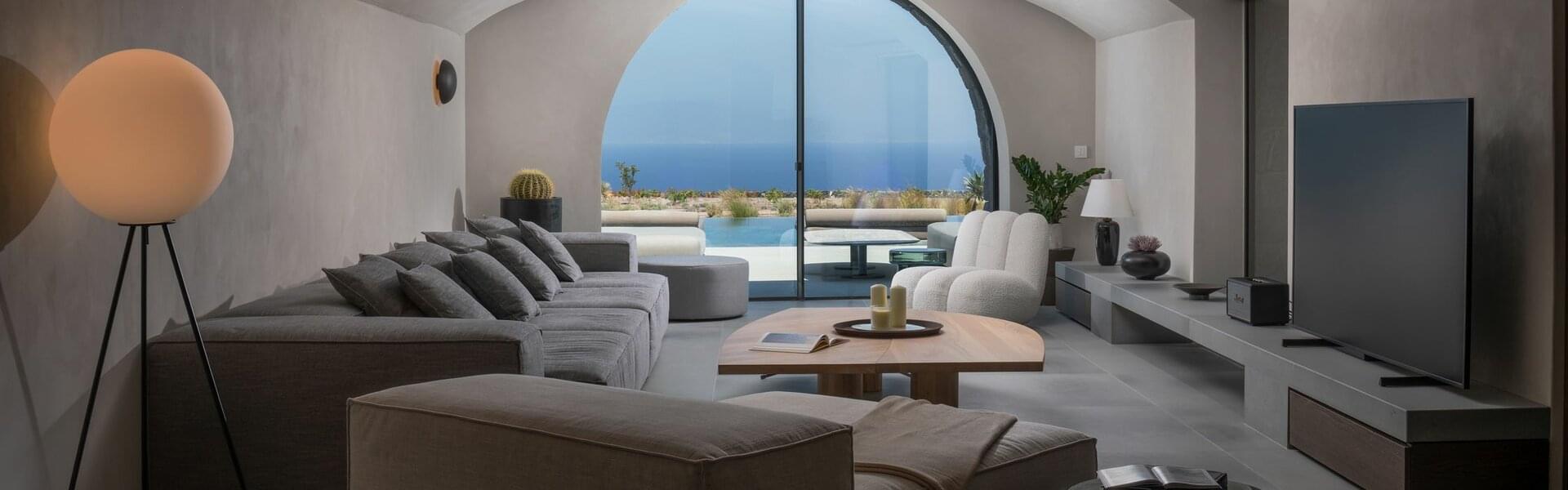 Villa Oia is a 5-bedroom ultra-luxury villa with amazing sea views situated at the entrance of Oia. This rare gem is perched on a private land of 5000 sq meters among natural and serene landscape facing northwest.