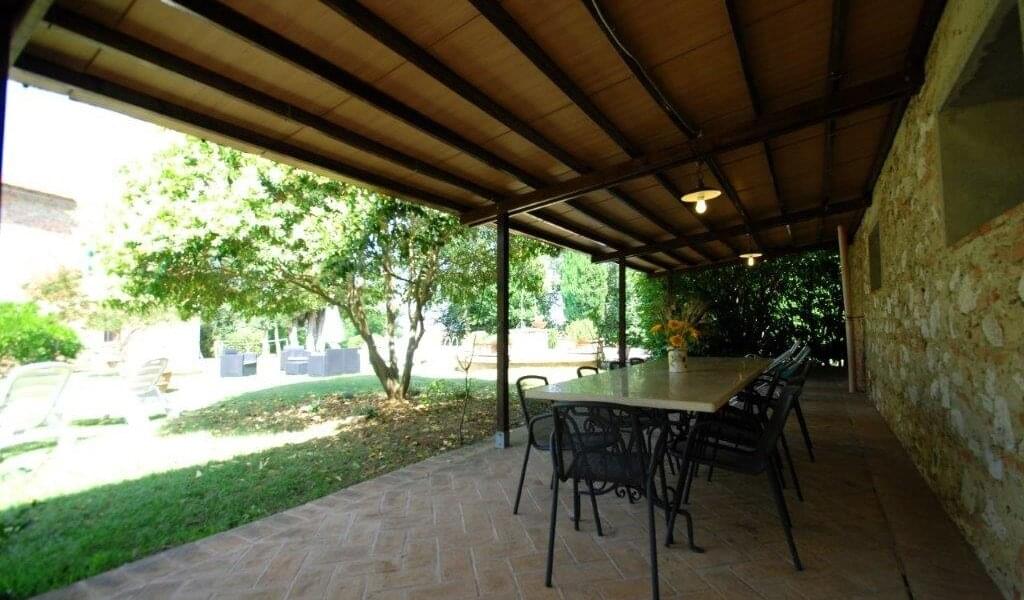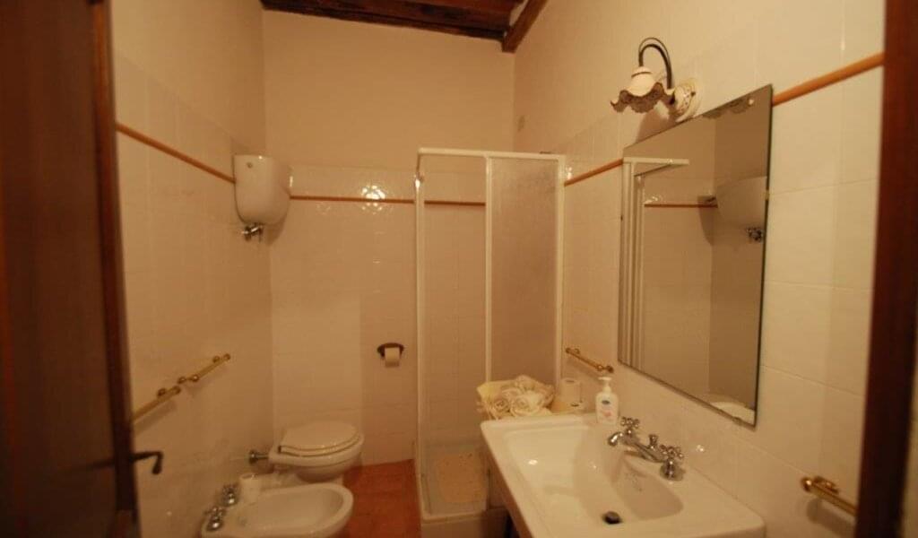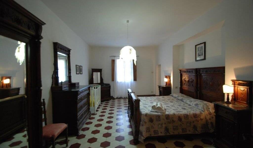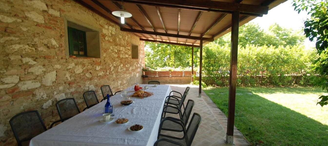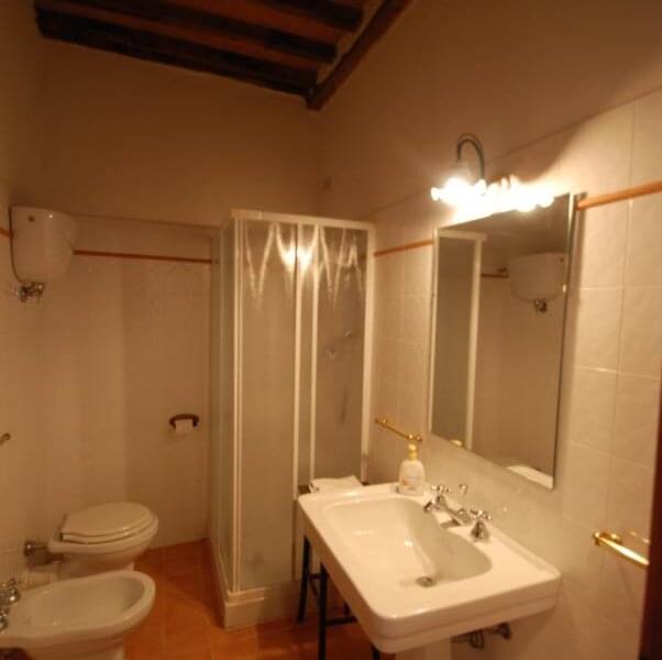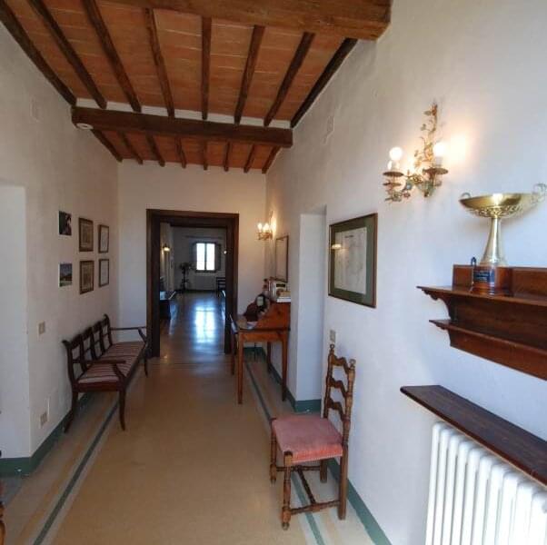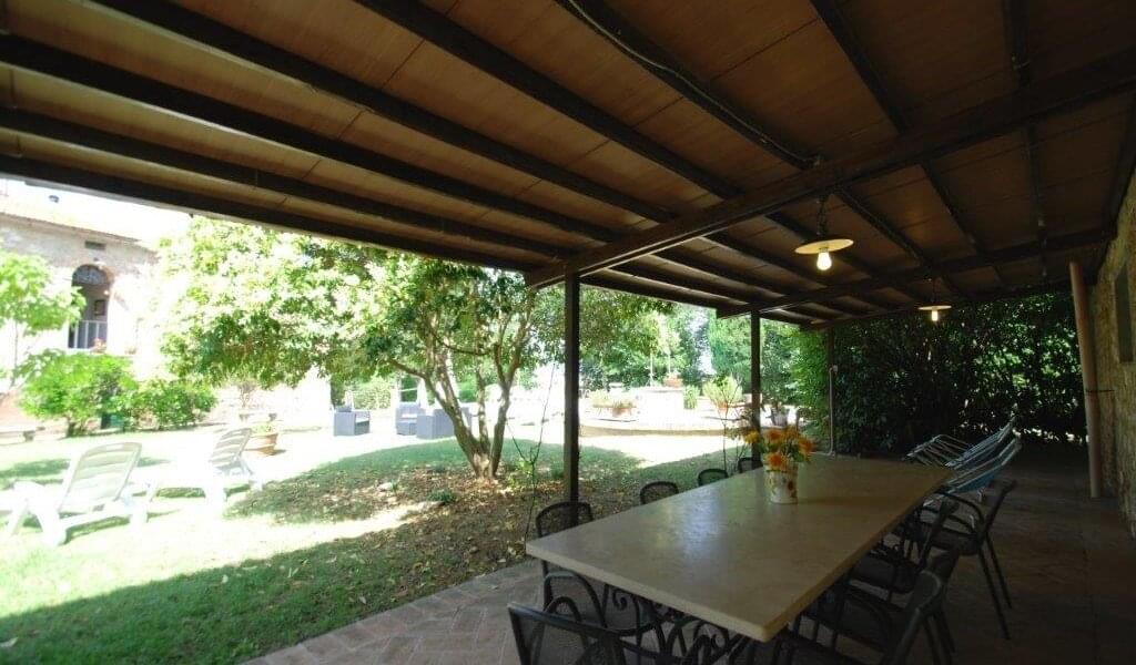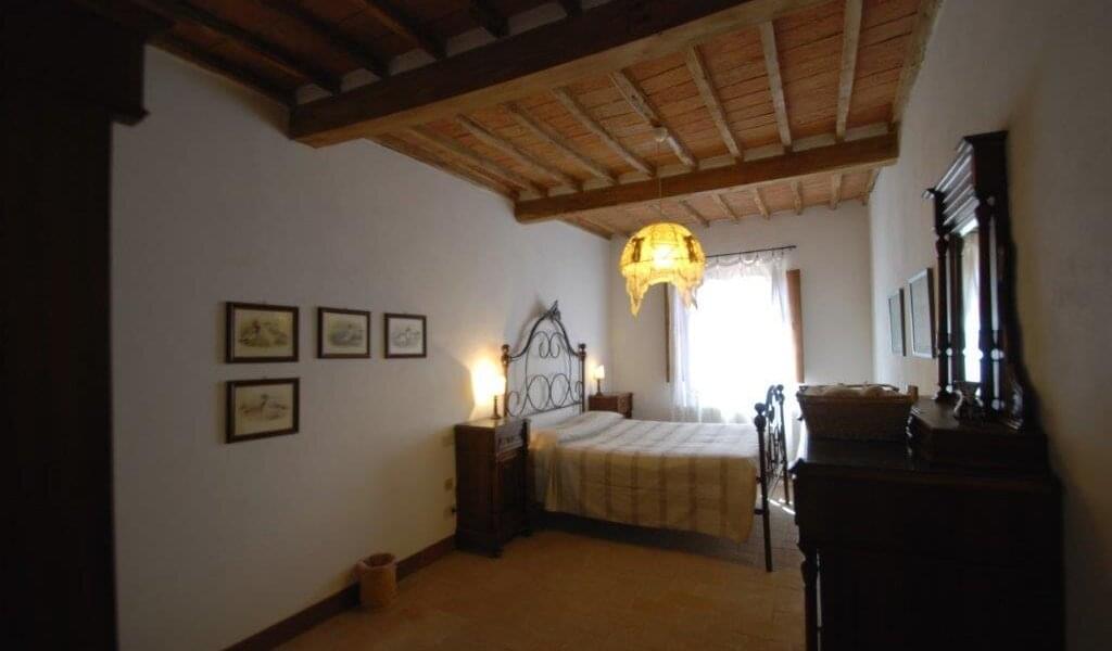 Villa Panorama is a simple yet comfortable country farmhouse on a working estate in central Tuscany. This traditional stone house has the main living area on the second floor, approached by a classic double marble stircase. Recently renovated, it has been preserved in style to offer a truly Tuscan experience. The large, well equipped kitchen has a massive fireplace. The living/dining room has plenty of seating and offers television. In front of the kitchen is a small study/reading room. Of the 5 bedrooms, 3 of them have queen size beds ensuite bathrooms with shower, 1 has two twin beds with ensuite bathtroom with shower, and the 5th one has two twin beds which has a large bathroom with shower at the end of the wide corridor leading to the rooms. The main floor has a laundry room with iron and ironing board. A wrought iron gate leads to the private Italian style garden, furnished with table and chairs for al fresco dinners. Also in the garden is a swimming pool for the exclusive use of guests.