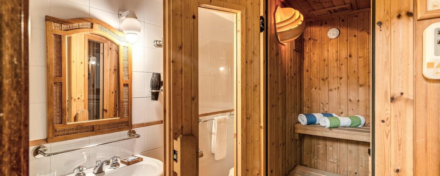 Private sauna, massage room (on request), and an authentic wine cellar with 100+ Italian and French labels