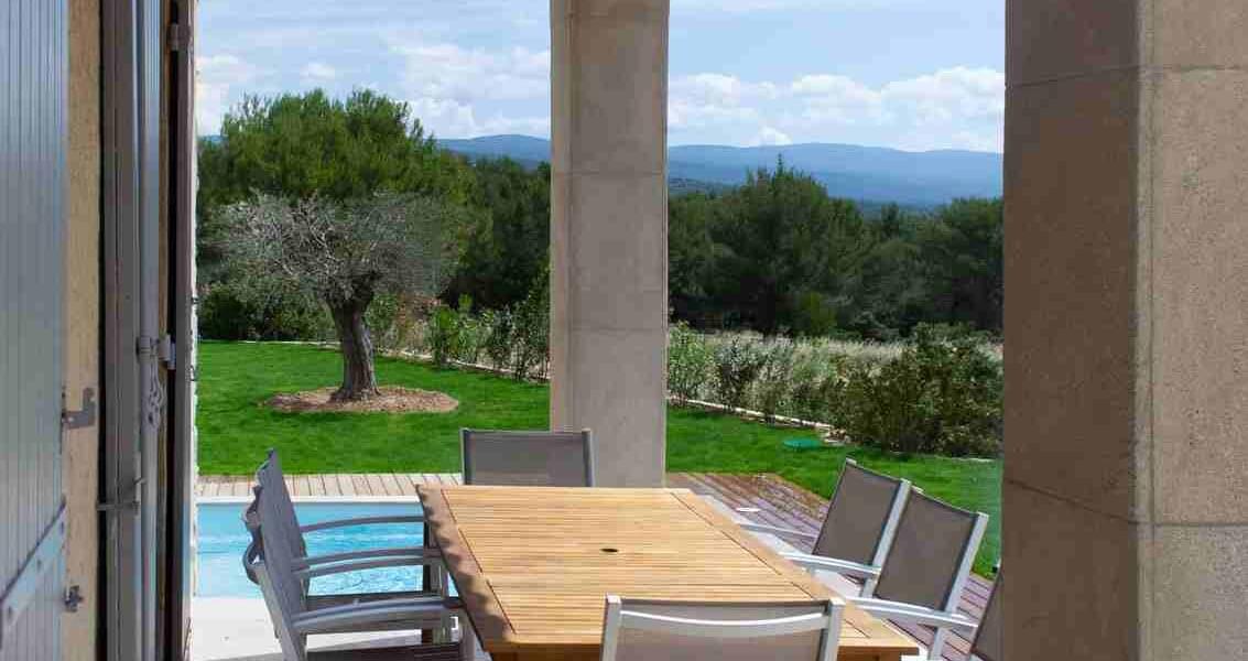 By the swimming pool, you will find a pool house offering a pleasant common living space, with breathtaking view on our beautiful Luberon and the villages of Roussillon, Bonnieux and Saignon.