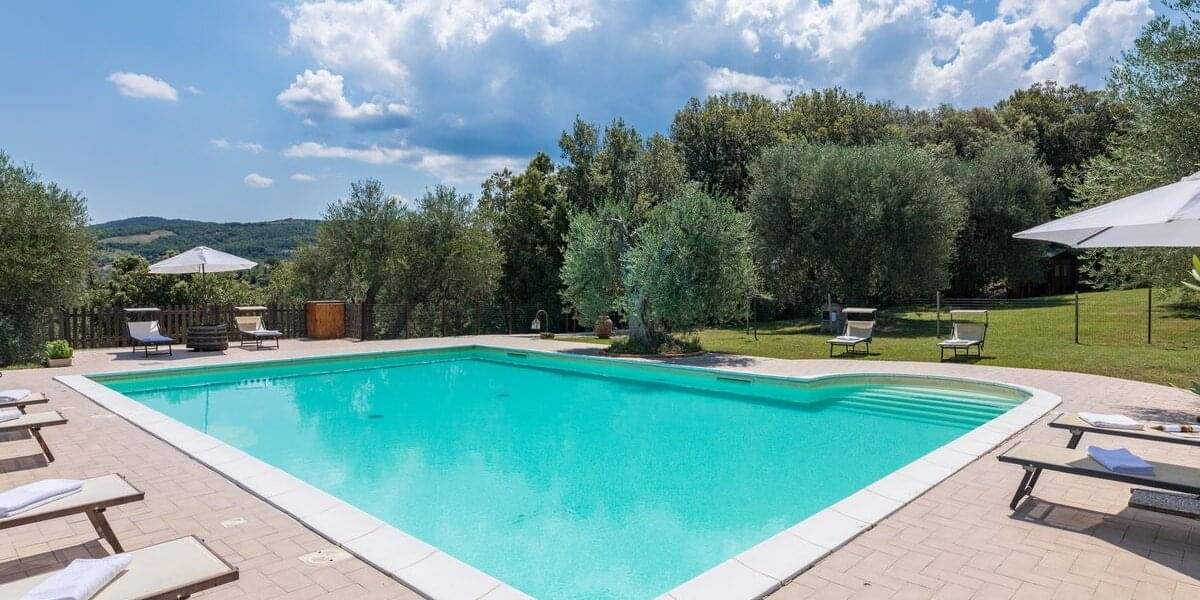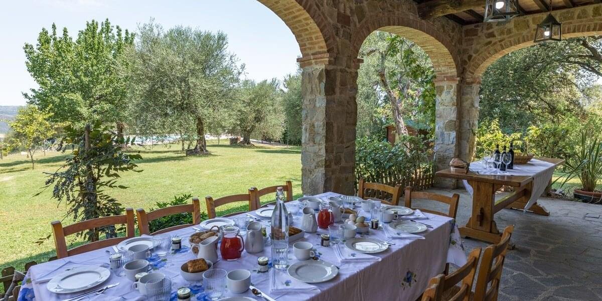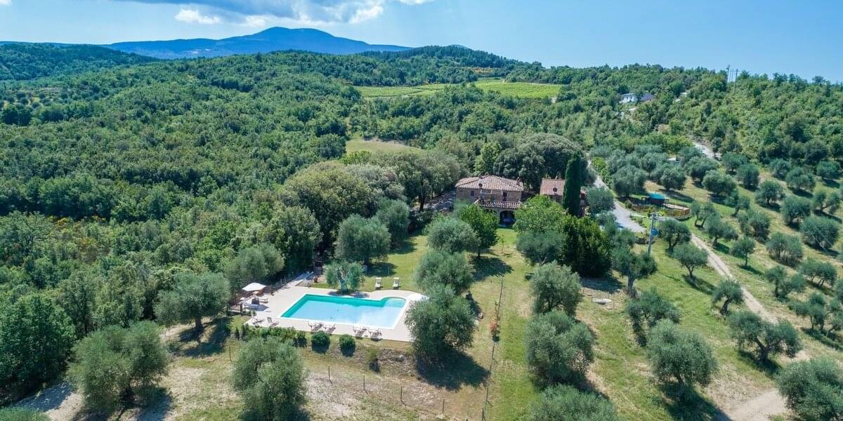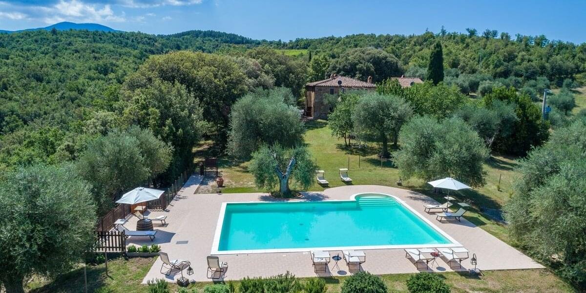 Villa Seggiano is located just outside the peaceful country village of Seggiano. Situated in the rolling Tuscan hills, this special retreat offers you a true taste of Tuscan country living in an authentic working farm. Set on a bucolic hillside with panoramic views, Villa Seggiano is surrounded by gardens and olive groves and has plenty of space to play and explore. This is a perfect location for a restful vacation in the country. Because Villa Seggiano is a working farm, the owners live next to the main house in an annex and spend the day on the property raising sheep and black pigs and farming the olive trees.