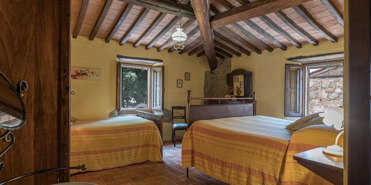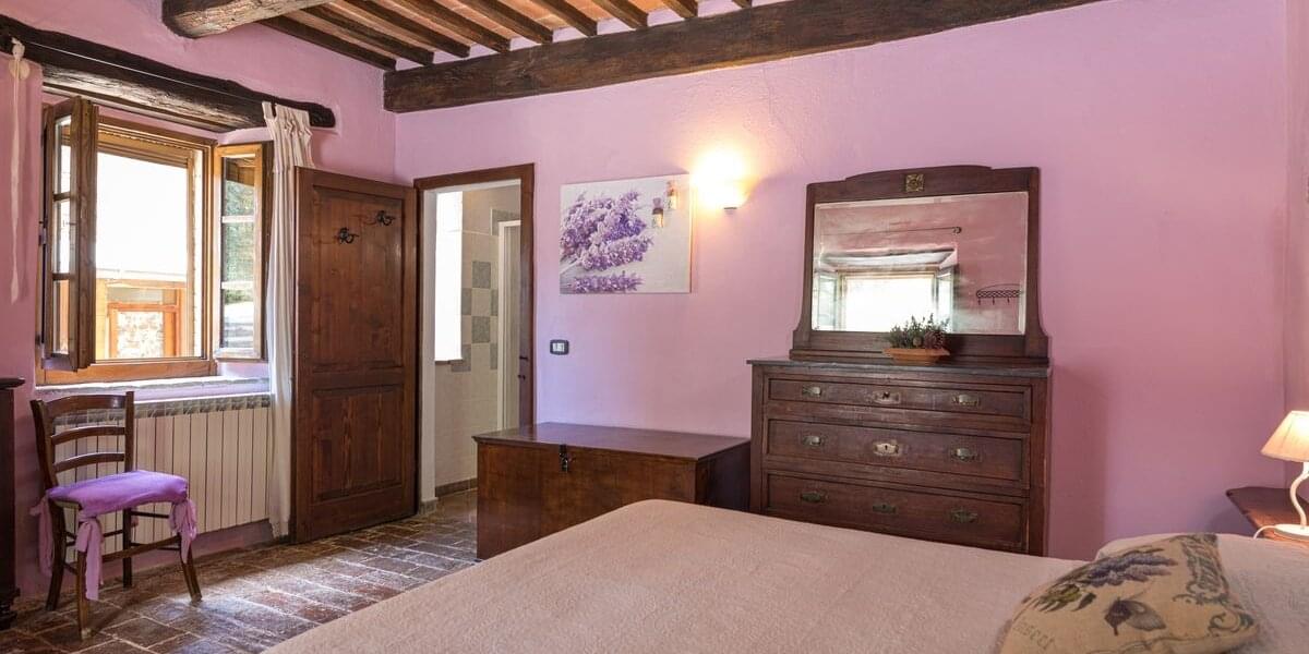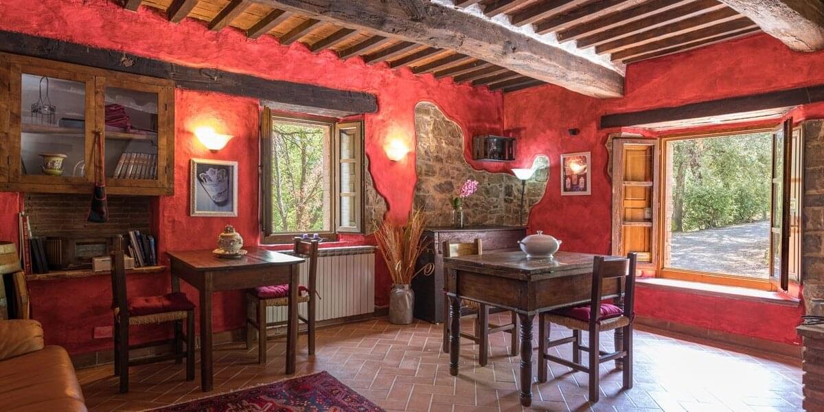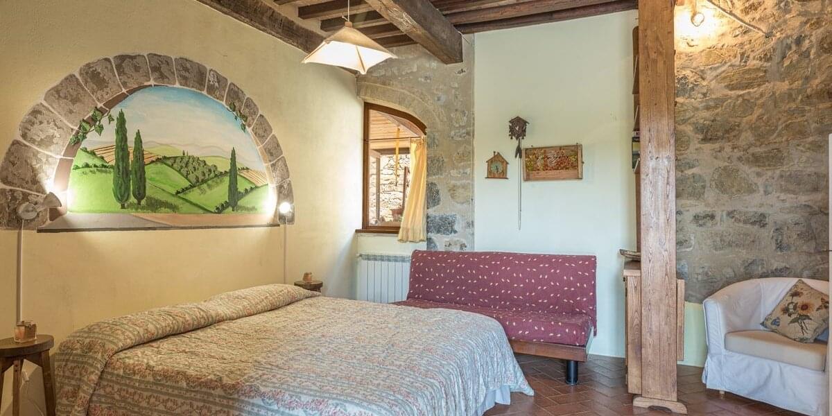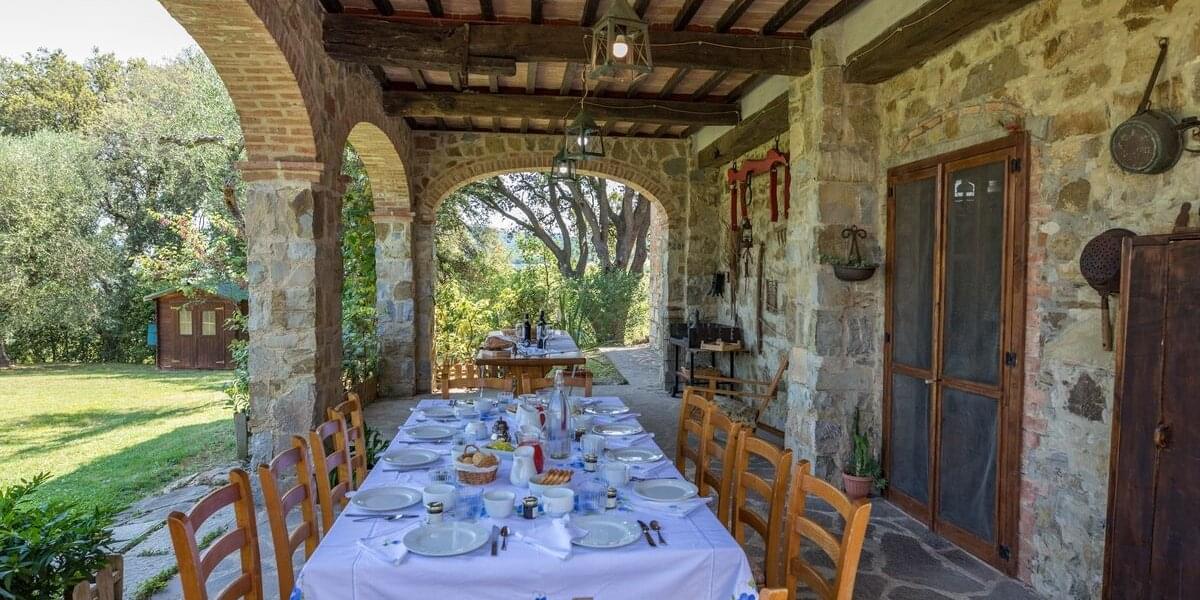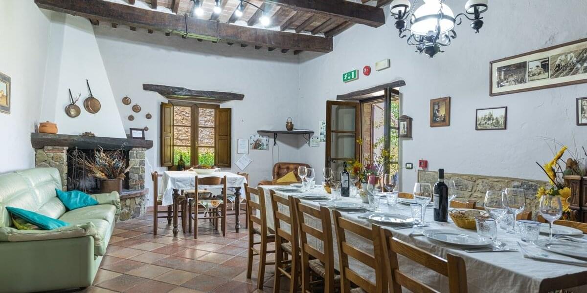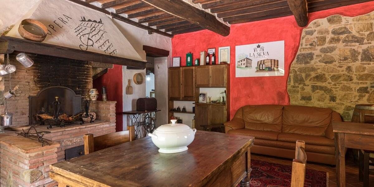 The house is on two levels with a spacious arched veranda overlooking the garden and pool. The veranda is furnished with tables and chairs and equipped with a BBQ and pizza oven for al fresco dining. The interior is rustic and cozy; exposed beams, terracotta floors, and antique furnishings give Villa Seggiano a very relaxed and comfortable ambience.