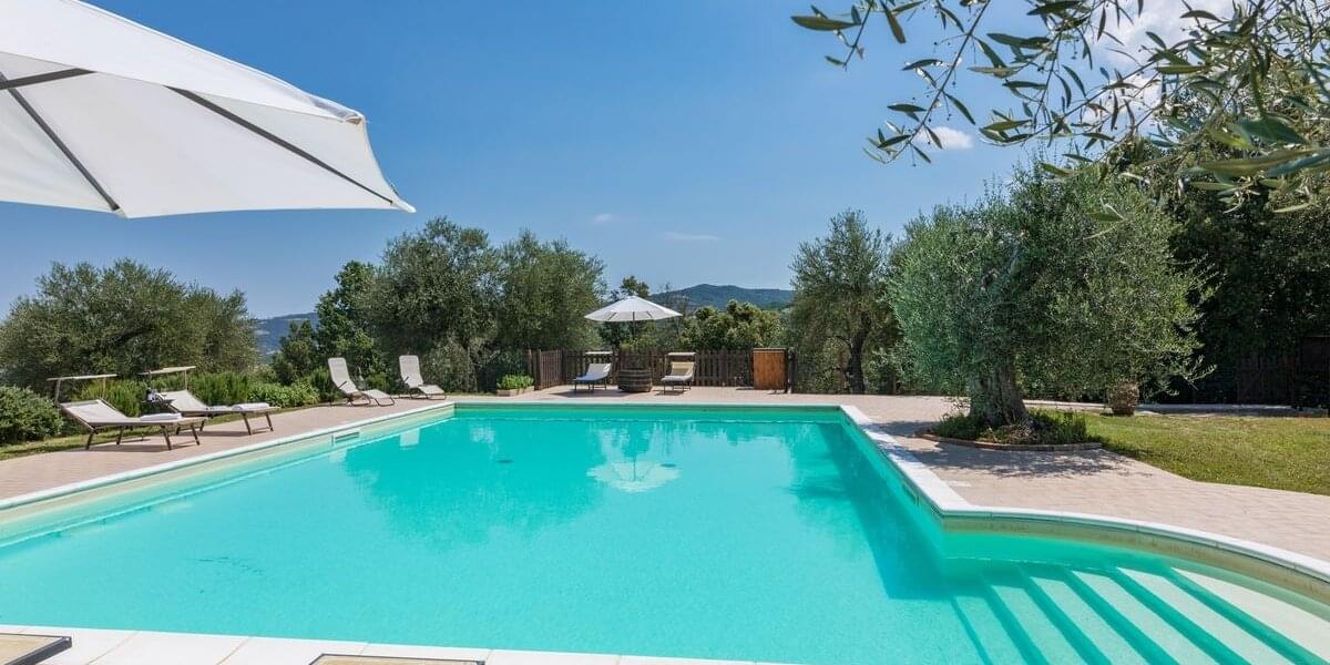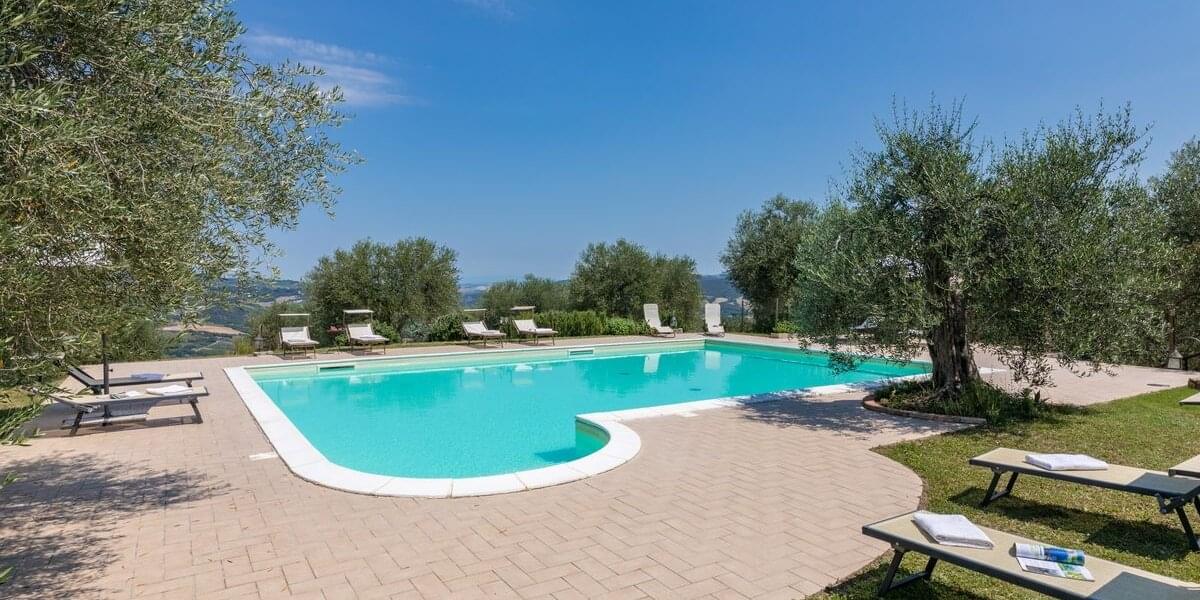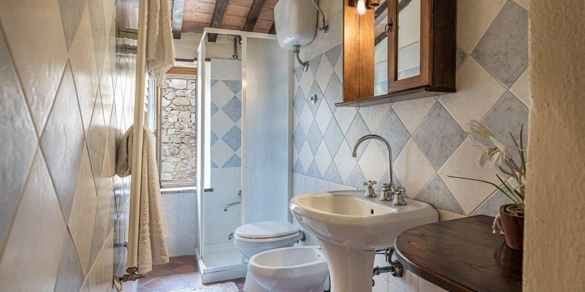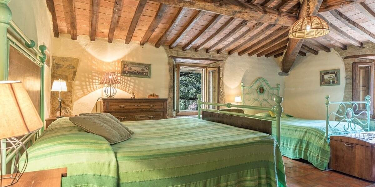 Villa Seggiano has two floors with a large arched veranda overlooking the garden and pool. On the ground floor there is a comfortably furnished living room complete with a fireplace and TV. Adjoining the living room is a spacious dining room with a second fireplace. The recently updated kitchen is well-equipped with most all of your cooking needs (stove, big fridge/freezer, oven, dishwasher, and washing machine). Also on the ground floor is a bedroom with a queen bed and en-suite shower bathroom. On the second floor are two bedrooms; each with a queen bed and a twin bed plus en-suite shower bathrooms. In addition, there is a bedroom with a queen bed, a kitchenette, en-suite shower bathroom, and terrace. Rounding out the second floor is one more bedroom with a queen bed and en-suite shower bathroom.