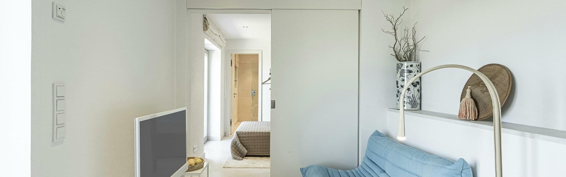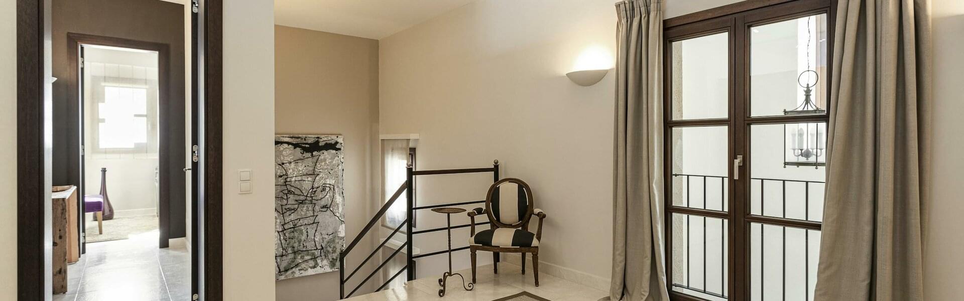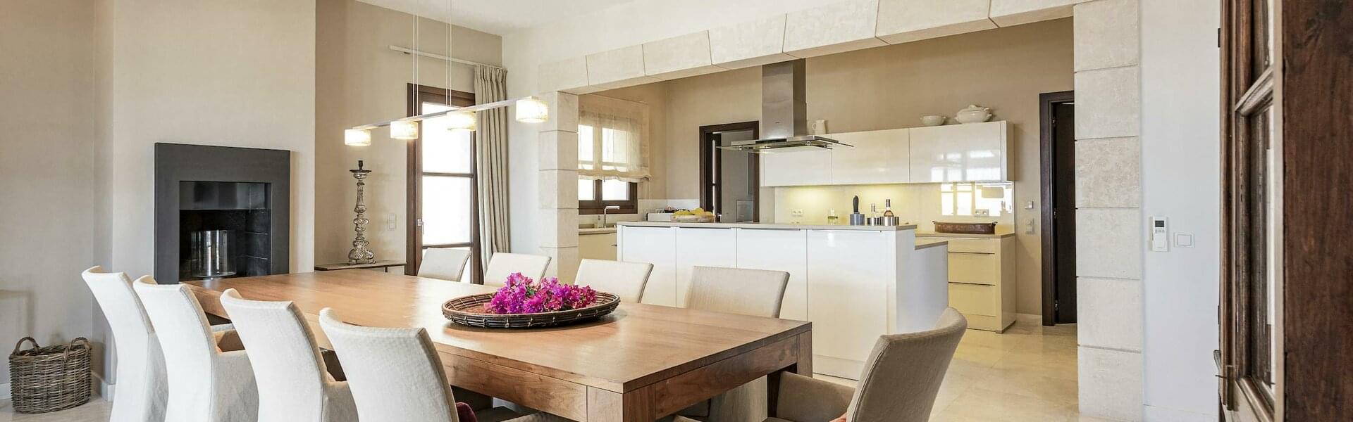 The large entrance hall leads into the living and dining areas, which have direct access to the terraces where you will find sumptuous seating and an outdoor dining area.