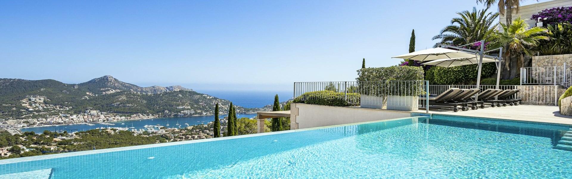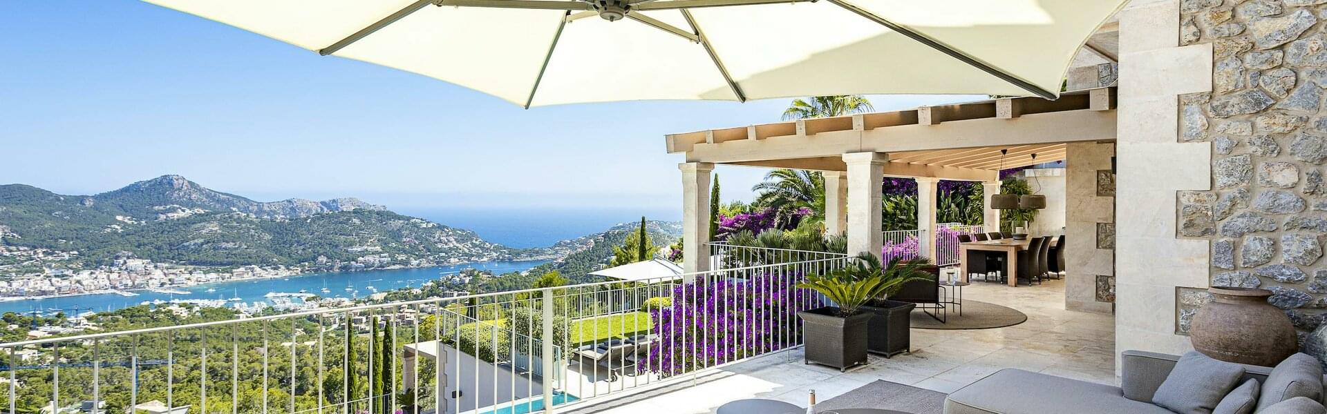 This majestic villa is sitting above Port Andratx in Monport opens out to breathtaking panoramic views of the bay.