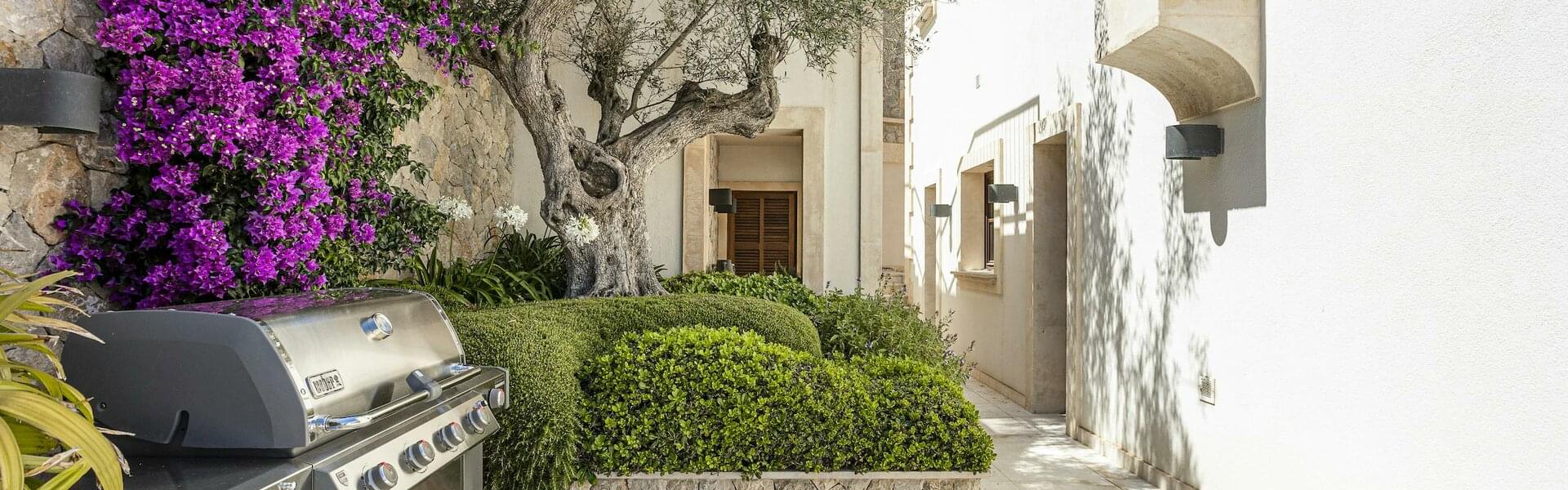 The outdoor areas consist of many cozy terraces, a large heated infinity pool, a Jacuzzi, a barbecue area with a fountain and extensive garden areas.