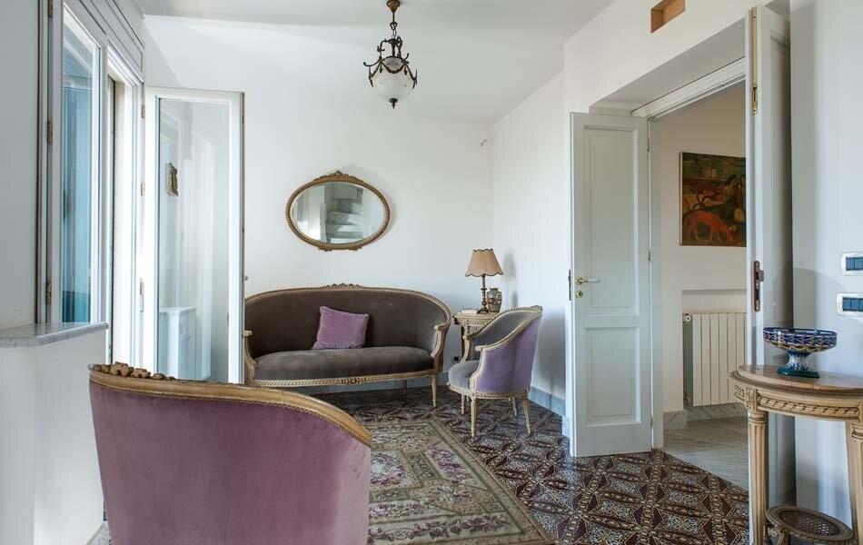 This exclusive villa, with private swimming pool and breathtaking views over the countryside, is just a few kilometers from Trapani, an elegant and refined town renowned for its beautiful historic center with cafés, restaurants, boutiques, and lively bars. The villa resides among lush gardens with olive and lemon trees, and exotic Mediterranean plants. Large terraces provide inspiring views from Erice to the salt pans and across the sea to the Egadi islands. Restored according to its traditional roots, the property evokes the aristocratic elegance of old Sicily. The light-infused and refined interior (with all modern conveniences) is furnished with antiques and stylishly decorated to create a warm, cozy atmosphere. The outdoor grounds include a large pool (open from April 1 to October 31), an outdoor shower, a dining area with table, chairs, and barbecue, a garden, and plenty of places to relax and read.