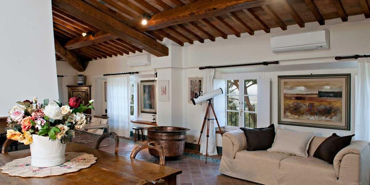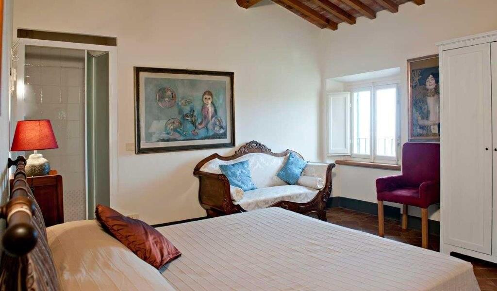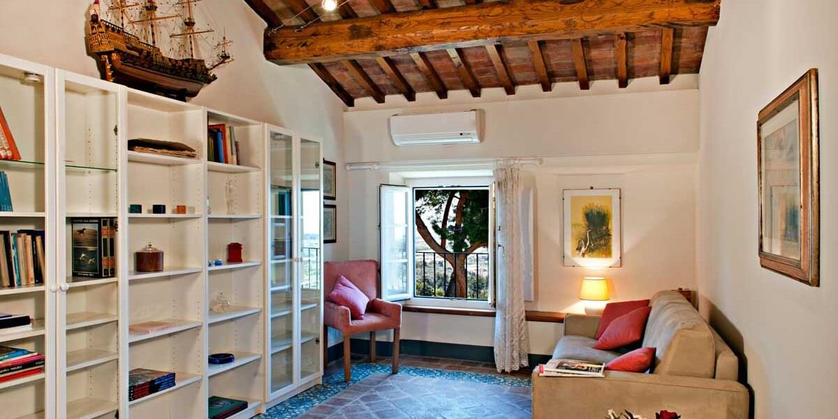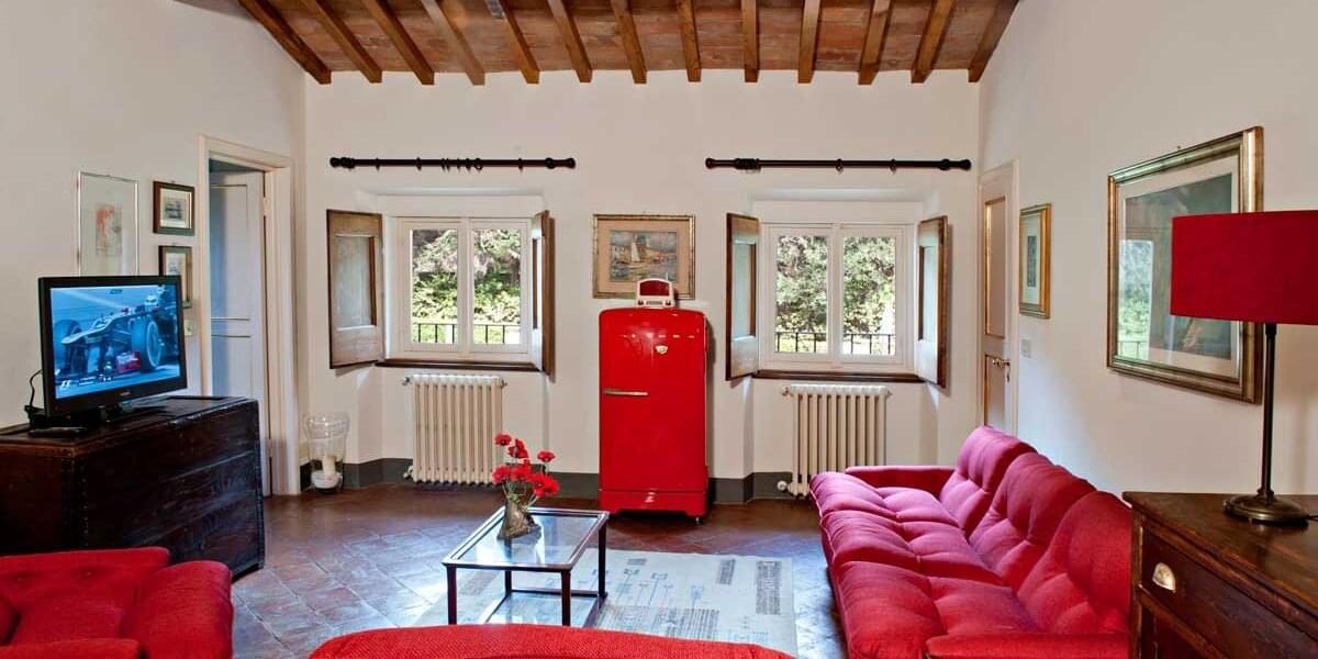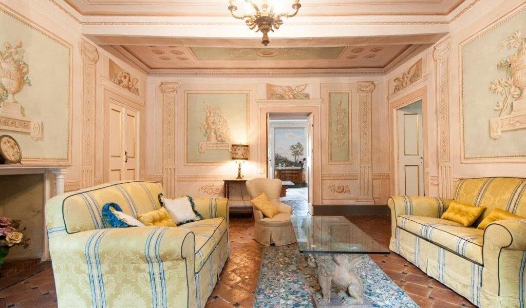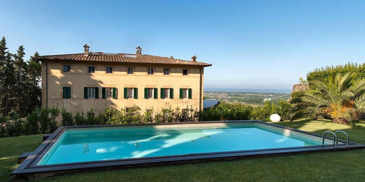 The restoration, carried out with full respect of the original building materials, has created a stylish holiday retreat, which retains all the charm of the historic residence together with the tranquility and privacy of a private home. The breathtaking panoramic view of the sea, Versilia plains and Tuscan hills can be appreciated from the house, swimming pool, gardens and terrace. The large, frescoed living rooms feature beautiful beamed ceilings and fine period furniture. The bedrooms overlooking this enchanting landscape, are comfortable and nicely furnished. The stylish bathrooms are finished with fine Italian marble and hand-painted ceramic tiles.