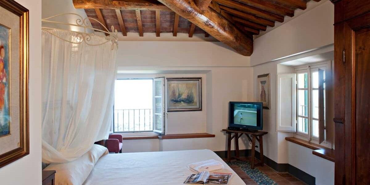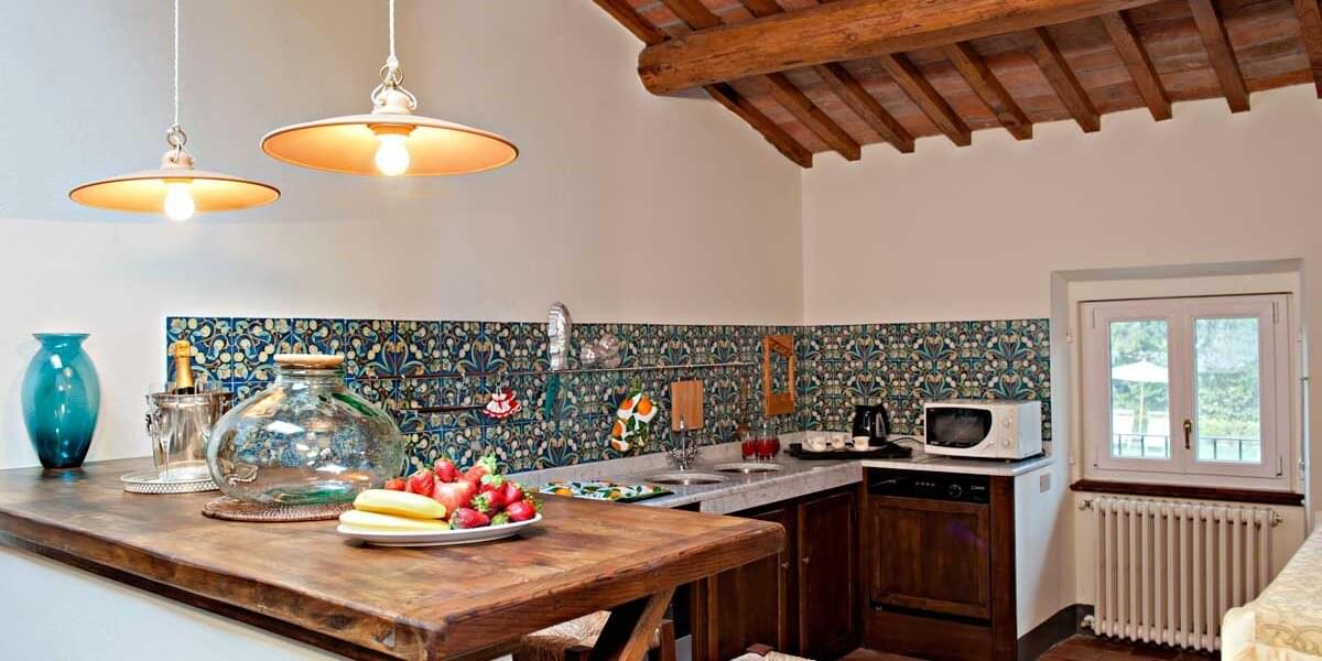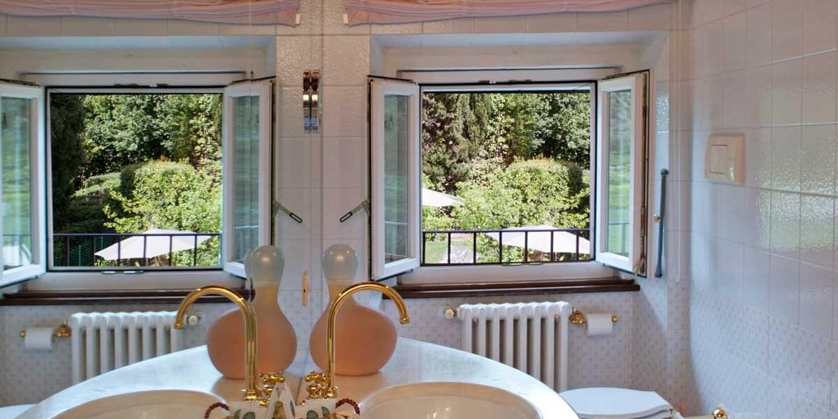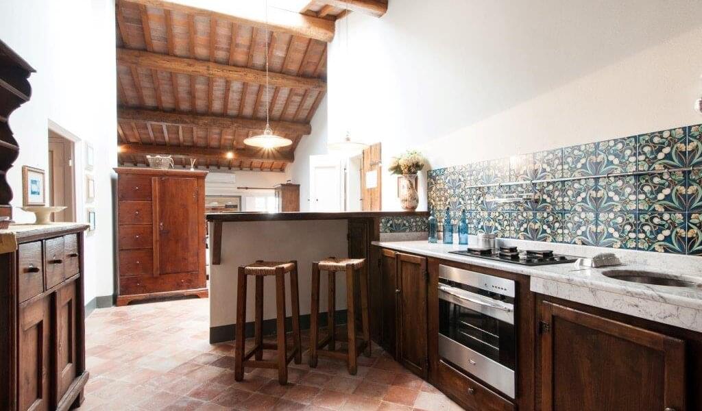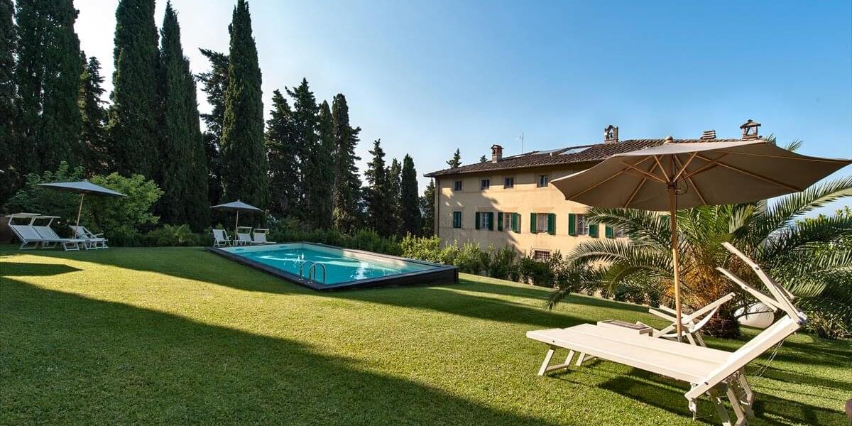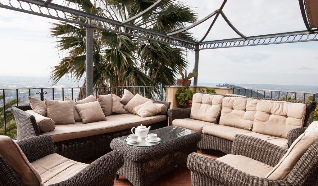 The restoration, carried out with full respect of the original building materials, has created a stylish holiday retreat, which retains all the charm of the historic residence together with the tranquility and privacy of a private home. The breathtaking panoramic view of the sea, Versilia plains and Tuscan hills can be appreciated from the house, swimming pool, gardens and terrace. The large, frescoed living rooms feature beautiful beamed ceilings and fine period furniture. The bedrooms overlooking this enchanting landscape, are comfortable and nicely furnished. The stylish bathrooms are finished with fine Italian marble and hand-painted ceramic tiles.